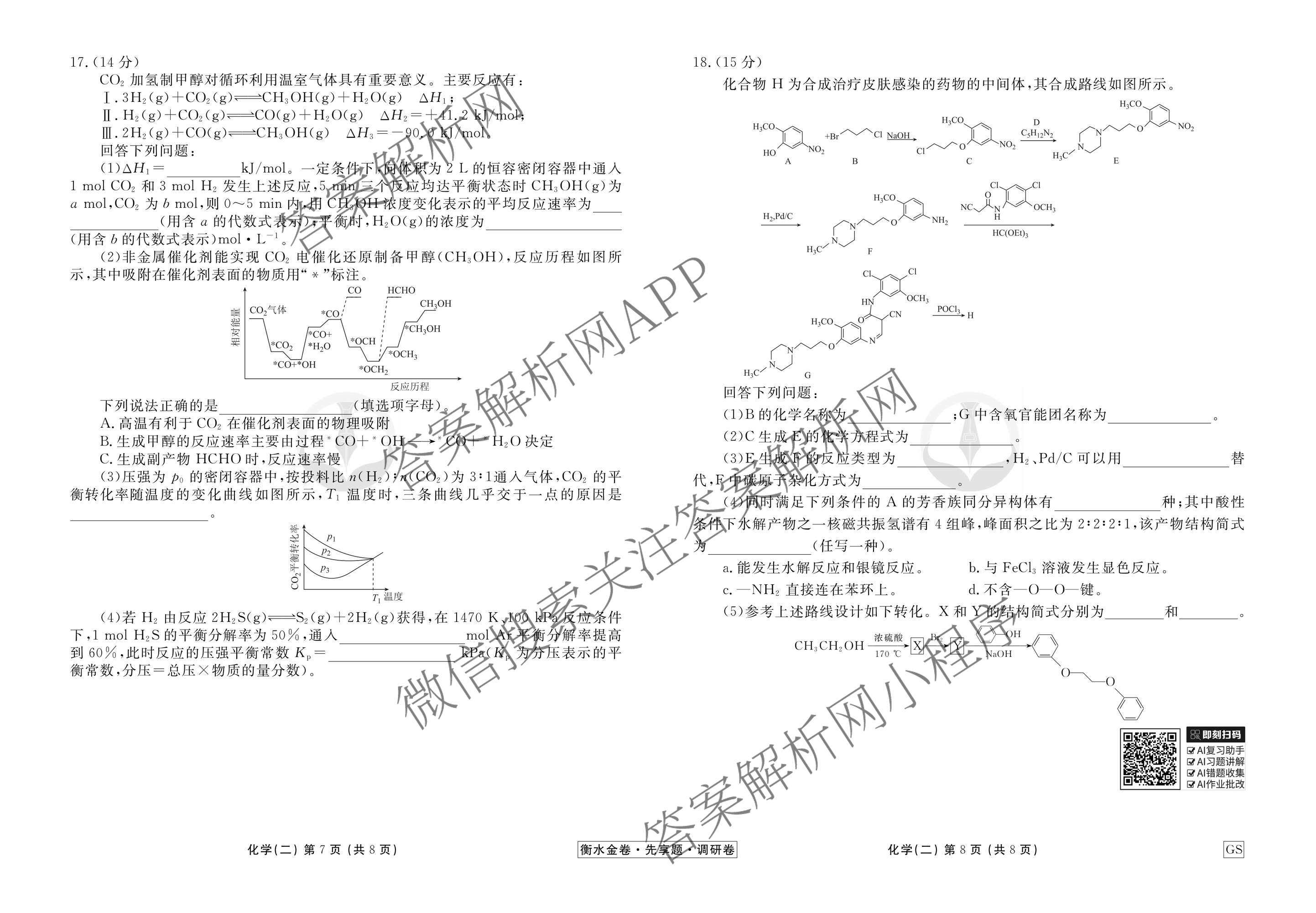 - [衡水金卷先享题]·调研卷·2026年普通高中学业水平选择性考试模拟试题(二)2化学(GS)答案