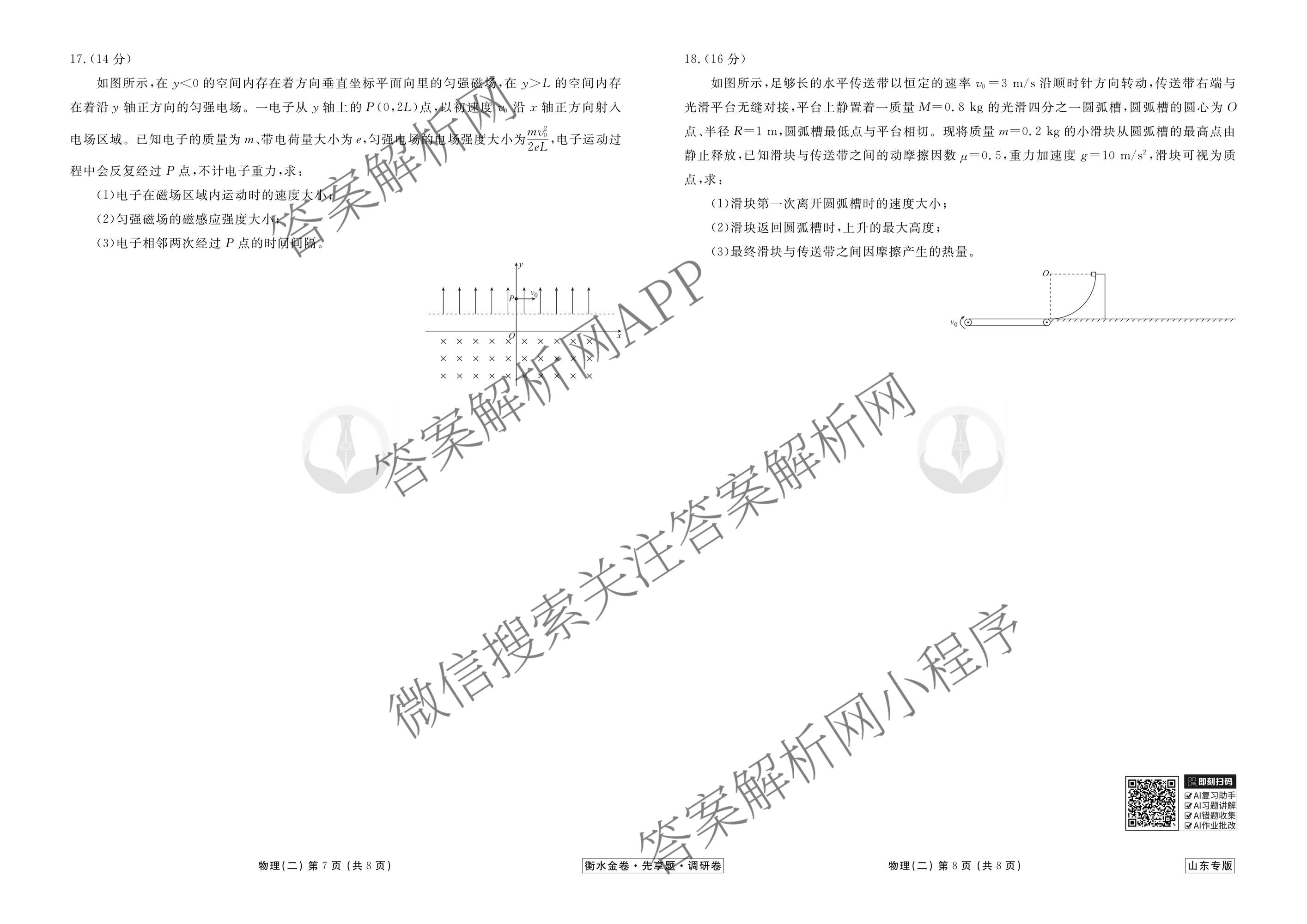 衡水金卷先享题·调研卷·2026年普通高中学业水平等级考试模拟试题(二)2物理(山东专版)试题,目前衡水金卷先享题答案网已经汇总了衡水金卷先享题·调研卷·2026年普通高中学业水平等级考试模拟试题(二)2物理(山东专版)试题的各科答案和试卷,获取更多衡水金卷先享题答案解析,请在关注本站。