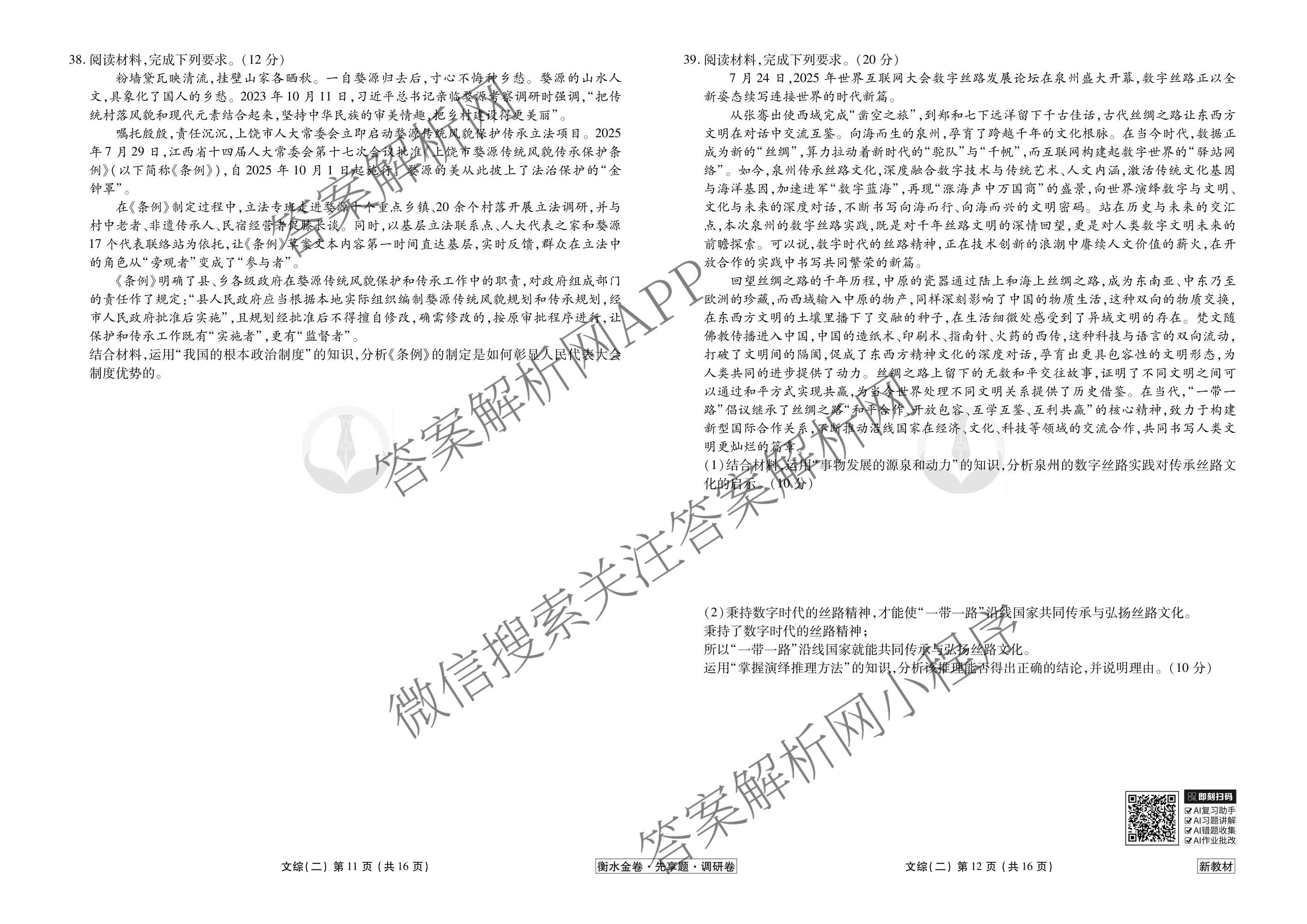 衡水金卷先享题·调研卷·2026年普通高等学校招生全国统一考试模拟(二)2文综(新教材)试题,目前衡水金卷先享题答案网已经汇总了衡水金卷先享题·调研卷·2026年普通高等学校招生全国统一考试模拟(二)2文综(新教材)试题的各科答案和试卷,获取更多衡水金卷先享题答案解析,请在关注本站。