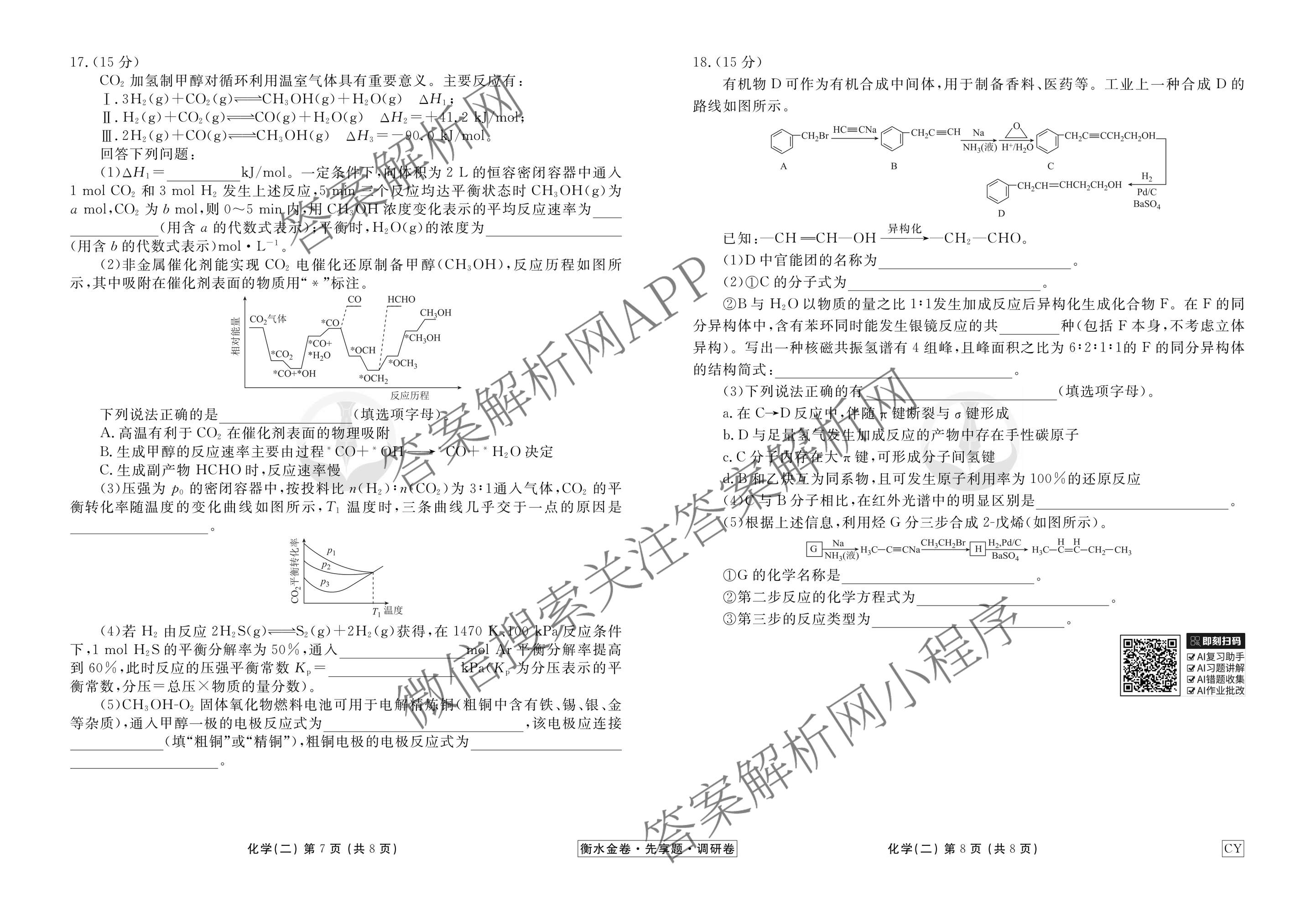 - [高三]衡水金卷先享题调研卷2026年普通高中学业水平选择性考试模拟试题(二)2化学(AH)试题