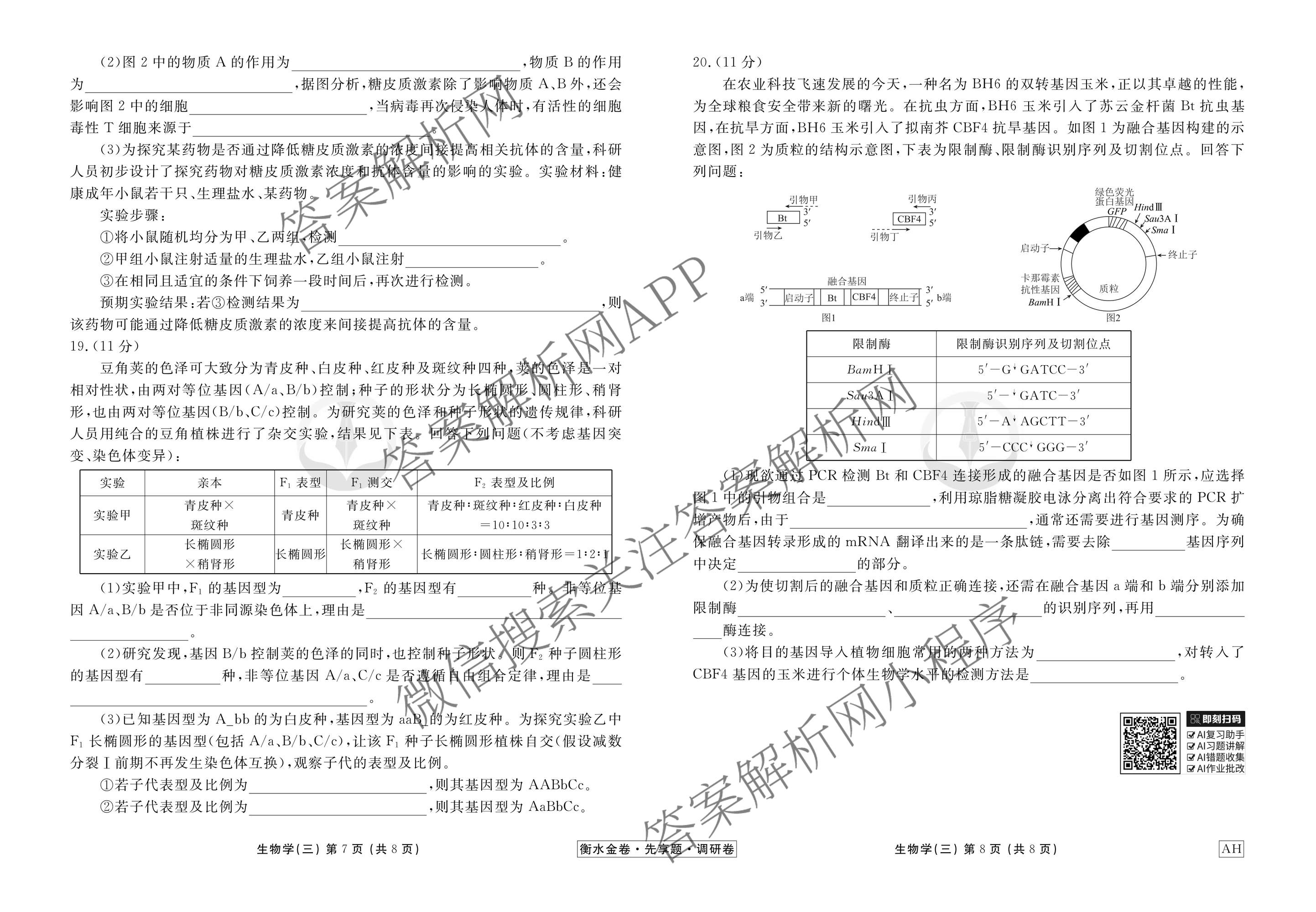 衡水金卷先享题·调研卷·2026年普通高中学业水平选择性考试模拟试题(三)3生物(AH)试题,目前衡水金卷先享题答案网已经汇总了衡水金卷先享题·调研卷·2026年普通高中学业水平选择性考试模拟试题(三)3生物(AH)试题的各科答案和试卷,获取更多衡水金卷先享题答案解析,请在关注本站。