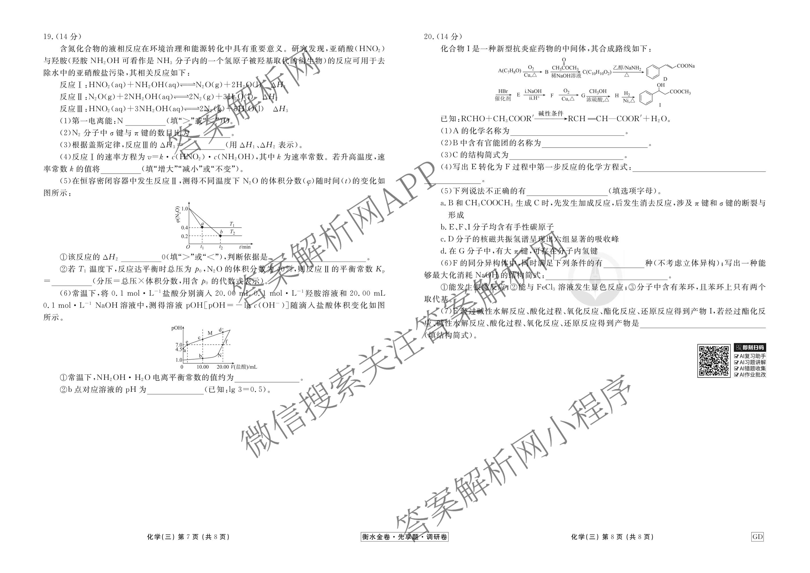 - [衡水金卷先享题]调研卷2026年普通高中学业水平选择性考试模拟试题(三)3化学(AH)答案
