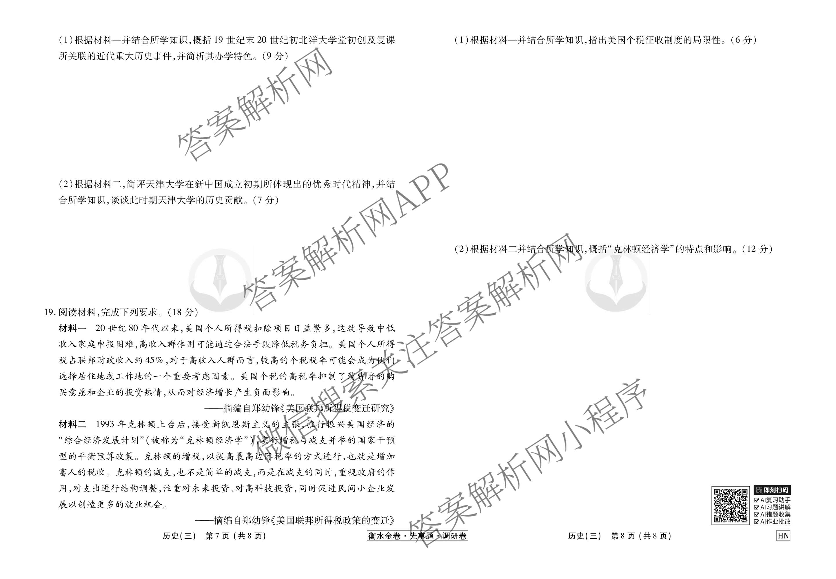 衡水金卷先享题·调研卷·2026年普通高中学业水平选择性考试模拟试题(三)3历史(HN)试题,目前衡水金卷先享题答案网已经汇总了衡水金卷先享题·调研卷·2026年普通高中学业水平选择性考试模拟试题(三)3历史(HN)试题的各科答案和试卷,获取更多衡水金卷先享题答案解析,请在关注本站。