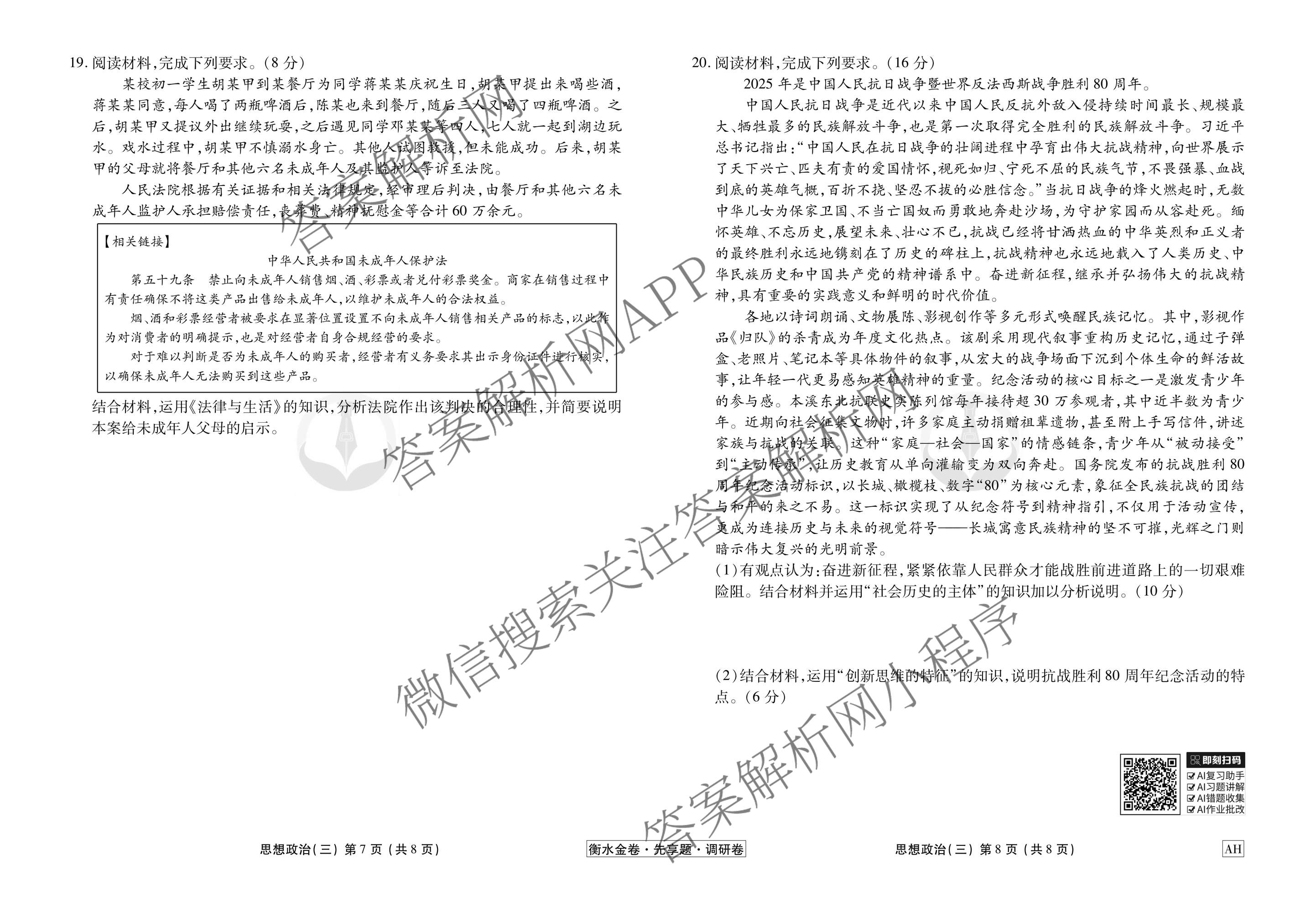 衡水金卷先享题·调研卷·2026年普通高中学业水平选择性考试模拟试题(三)3政治(AH)试题,目前衡水金卷先享题答案网已经汇总了衡水金卷先享题·调研卷·2026年普通高中学业水平选择性考试模拟试题(三)3政治(AH)试题的各科答案和试卷,获取更多衡水金卷先享题答案解析,请在关注本站。
