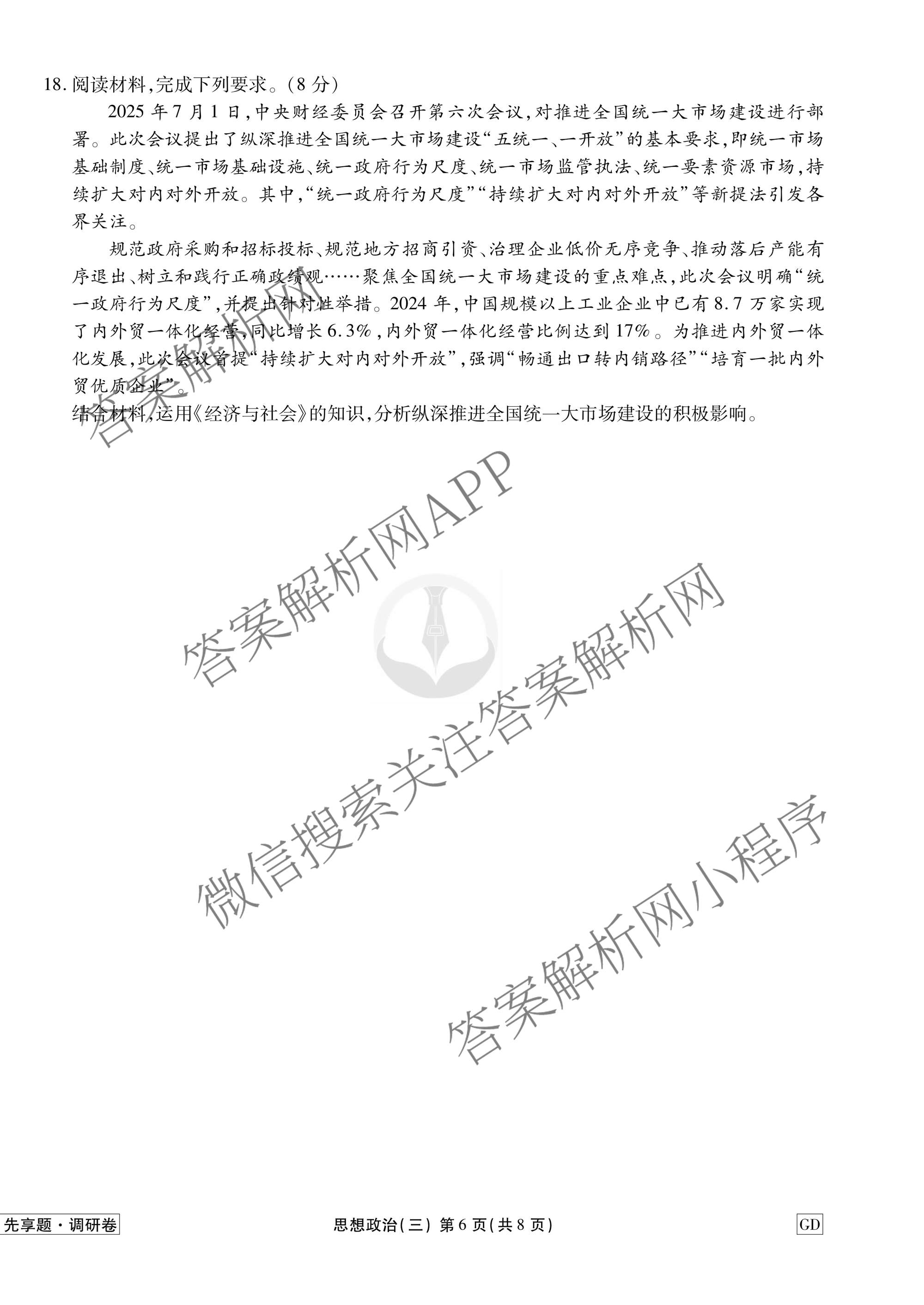 衡水金卷先享题·调研卷·2026年普通高中学业水平选择性考试模拟试题(三)3政治(GD)试题,目前衡水金卷先享题答案网已经汇总了衡水金卷先享题·调研卷·2026年普通高中学业水平选择性考试模拟试题(三)3政治(GD)试题的各科答案和试卷,获取更多衡水金卷先享题答案解析,请在关注本站。