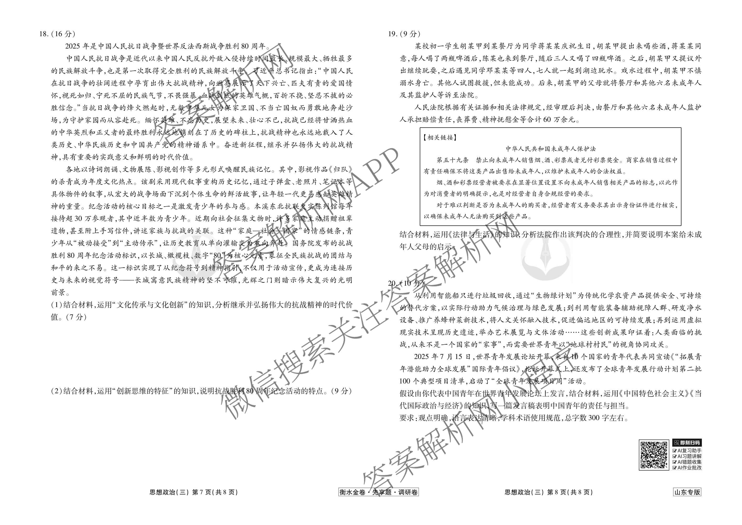 衡水金卷先享题·调研卷·2026年普通高中学业水平等级考试模拟试题(三)3政治(山东专版)试题,目前衡水金卷先享题答案网已经汇总了衡水金卷先享题·调研卷·2026年普通高中学业水平等级考试模拟试题(三)3政治(山东专版)试题的各科答案和试卷,获取更多衡水金卷先享题答案解析,请在关注本站。