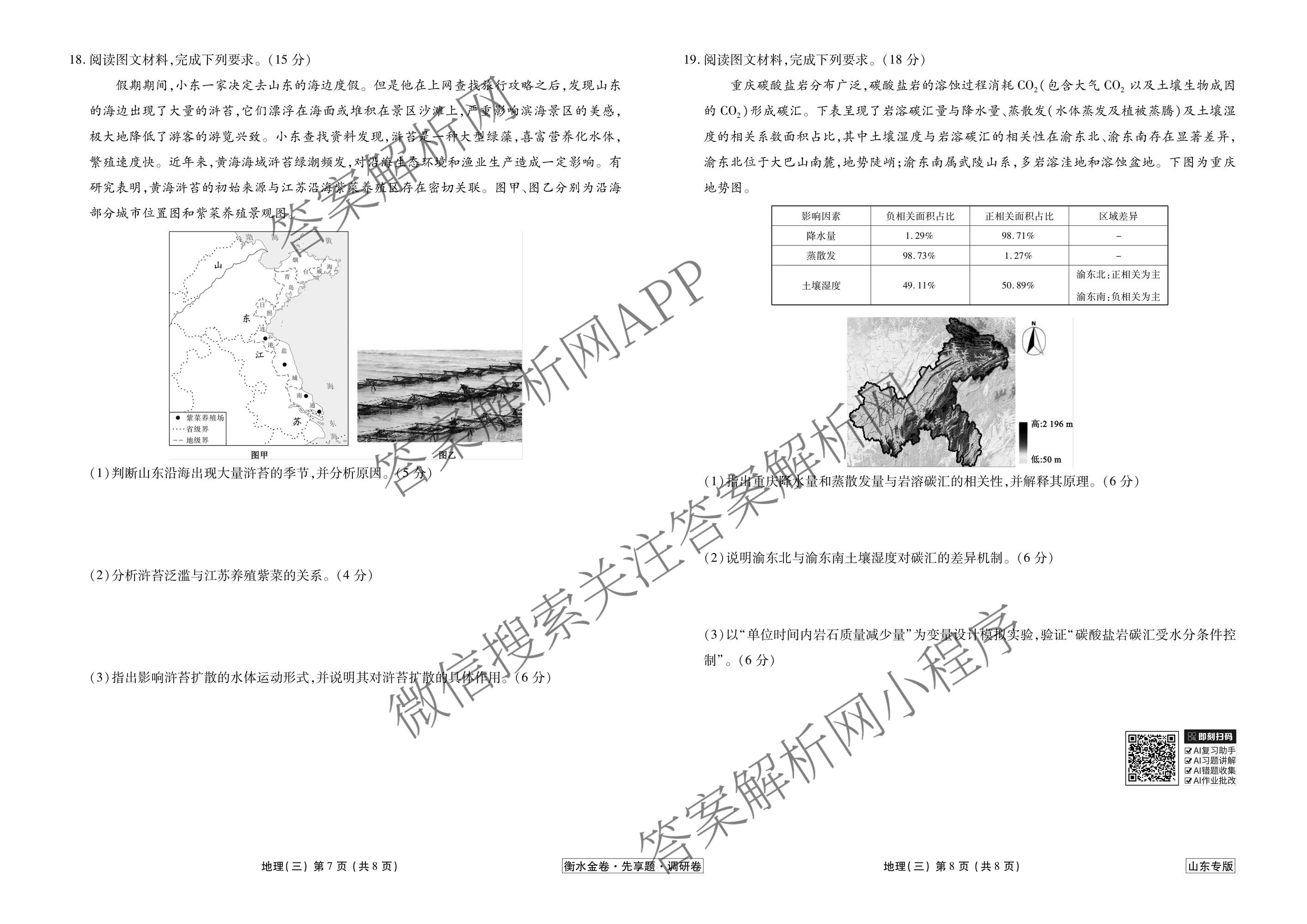 - [高三](衡水金卷先享题)·调研卷·2026年普通高中学业水平等级考试模拟试题(三)3地理(山东专版)答案