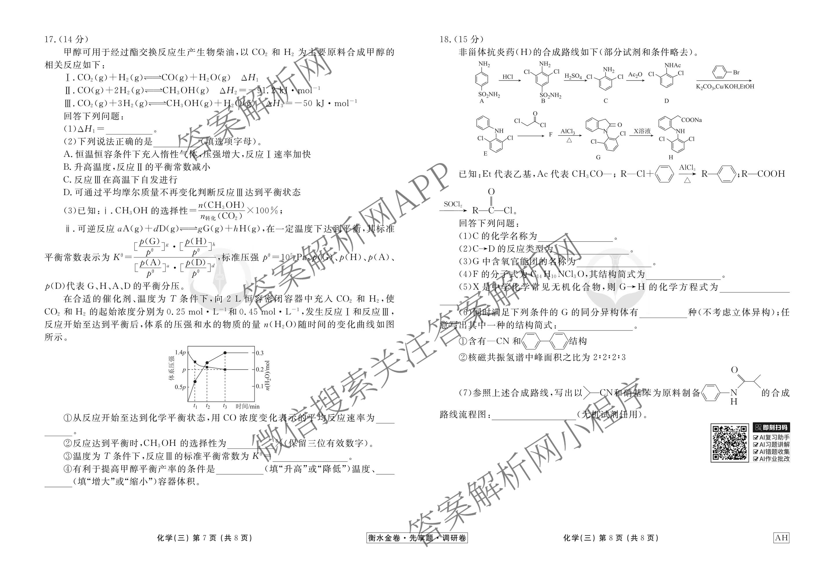 - [衡水金卷先享题]调研卷2026年普通高中学业水平选择性考试模拟试题(三)3化学(AH)答案