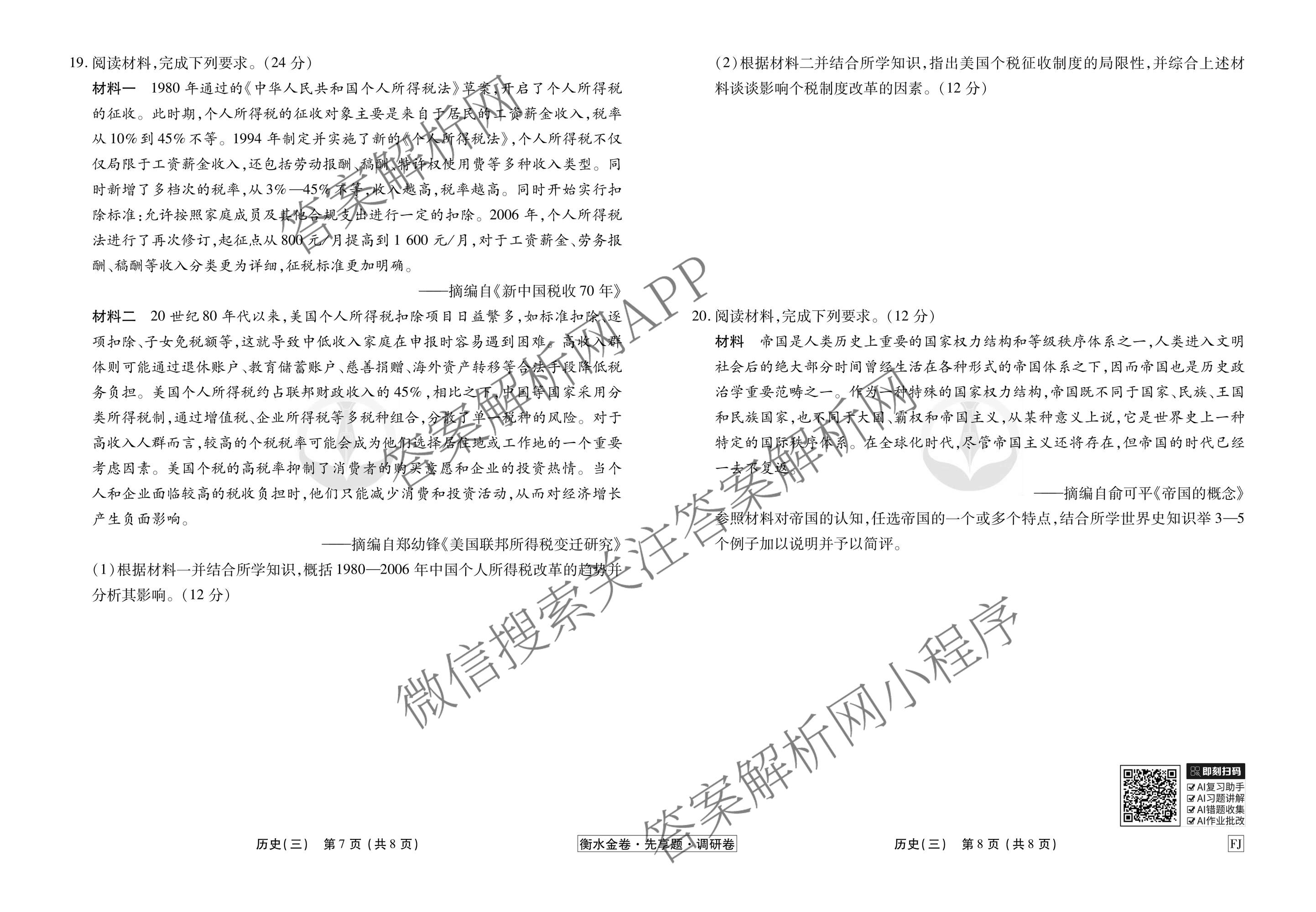 - [衡水金卷先享题]调研卷2026年普通高中学业水平等级考试模拟试题(三)3历史(山东专版)答案