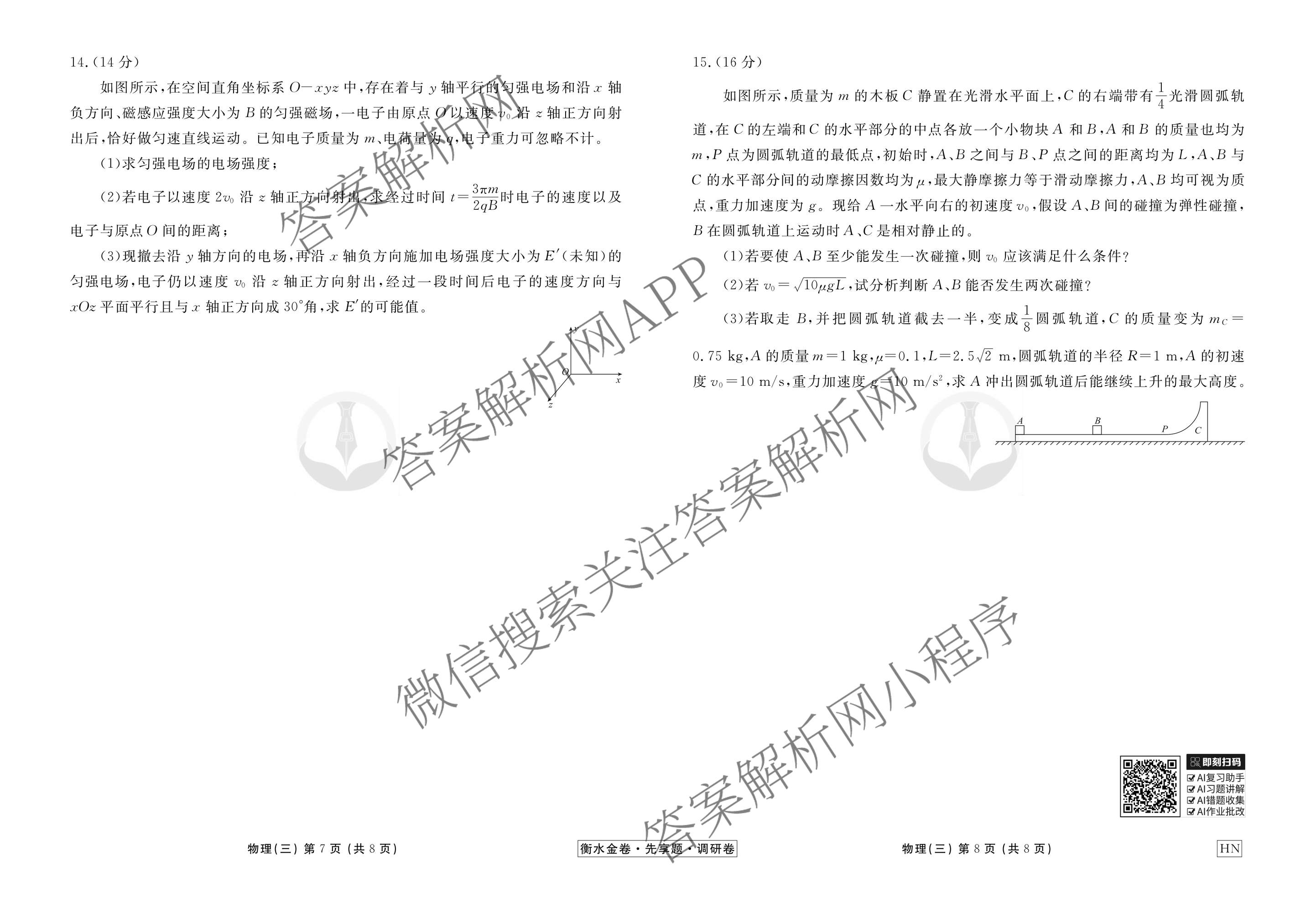 衡水金卷先享题·调研卷·2026年普通高中学业水平选择性考试模拟(三)3物理(HN)试题,目前衡水金卷先享题答案网已经汇总了衡水金卷先享题·调研卷·2026年普通高中学业水平选择性考试模拟(三)3物理(HN)试题的各科答案和试卷,获取更多衡水金卷先享题答案解析,请在关注本站。