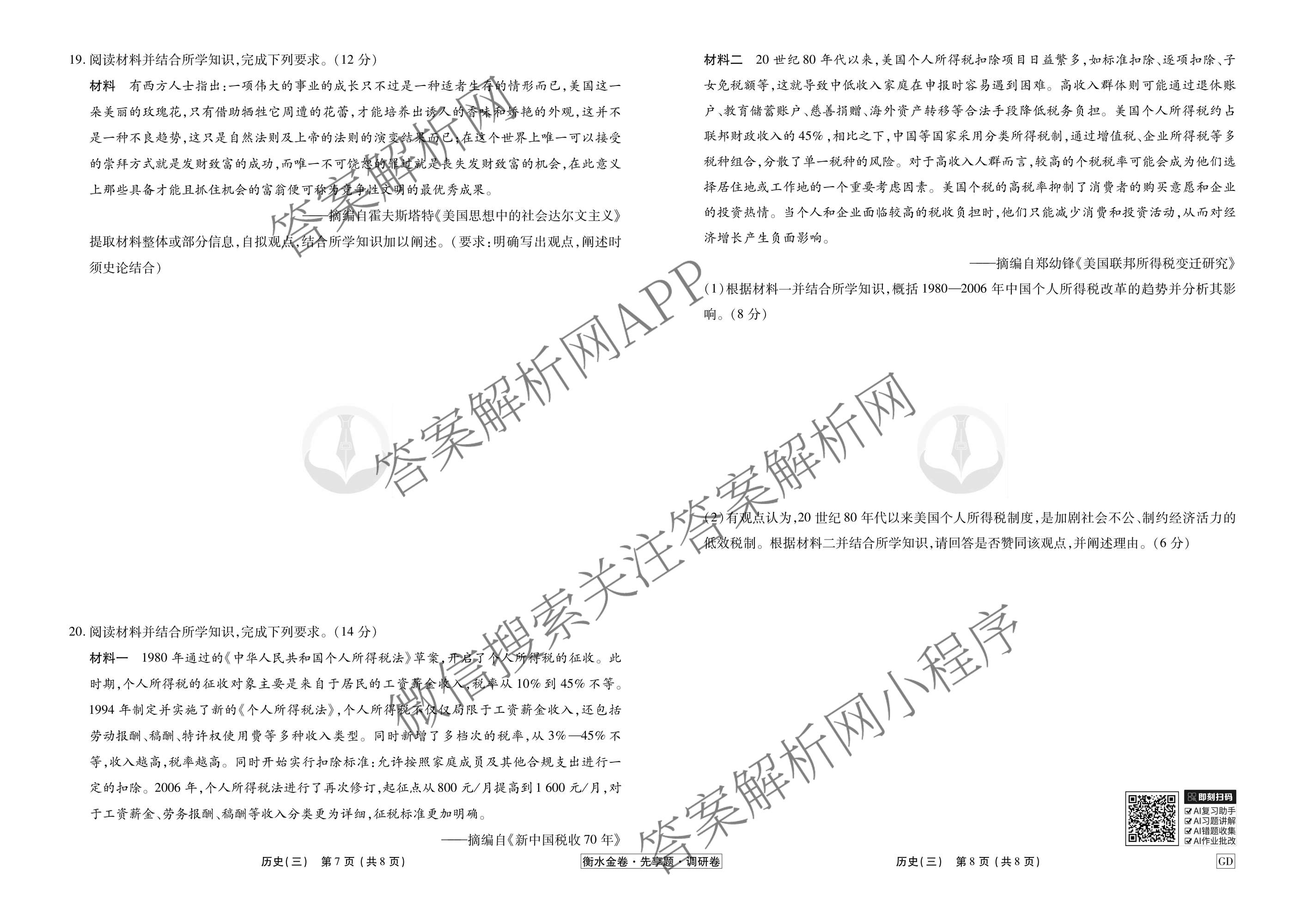 - [衡水金卷先享题]调研卷2026年普通高中学业水平等级考试模拟试题(三)3历史(山东专版)答案
