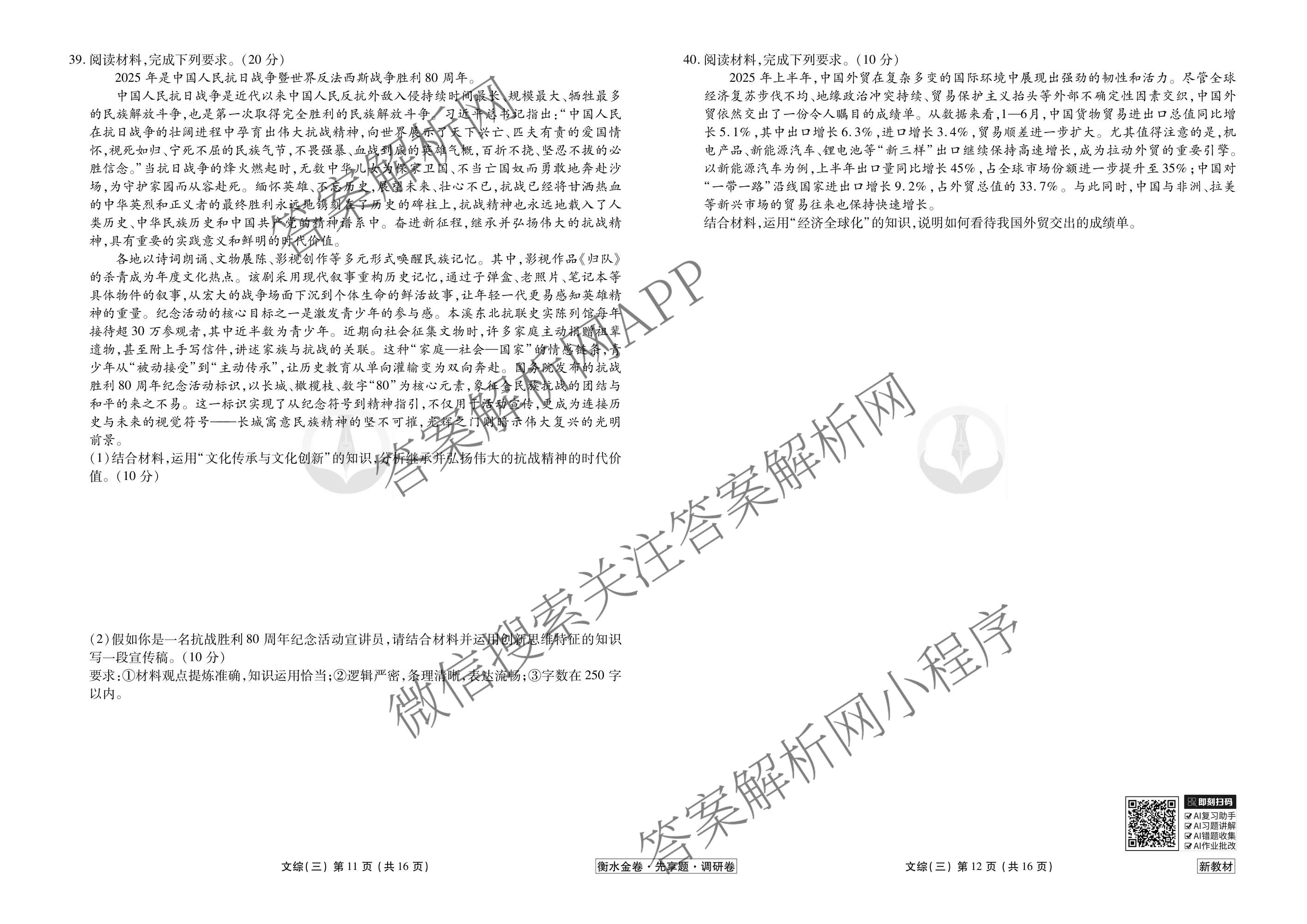 衡水金卷先享题·调研卷·2026年普通高等学校招生全国统一考试模拟(三)3文综(新教材)试题,目前衡水金卷先享题答案网已经汇总了衡水金卷先享题·调研卷·2026年普通高等学校招生全国统一考试模拟(三)3文综(新教材)试题的各科答案和试卷,获取更多衡水金卷先享题答案解析,请在关注本站。
