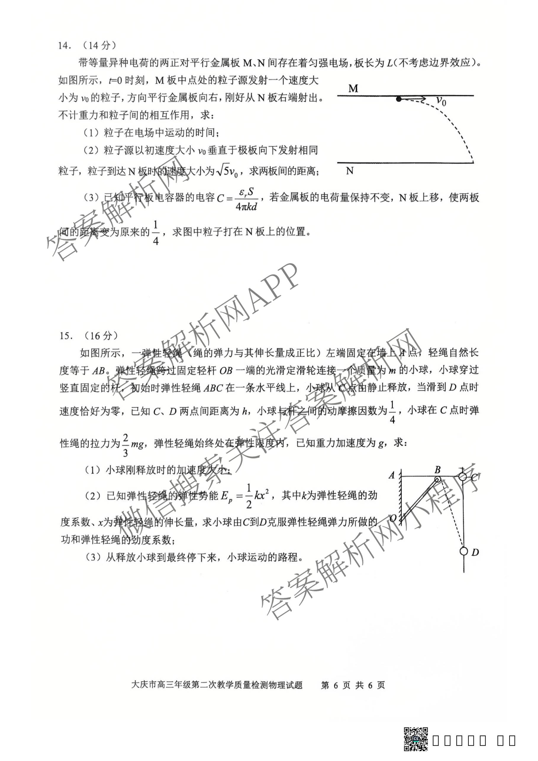[大庆二模]黑龙江大庆市2026届高三年级第二次教学质量检测物理试题,目前衡水金卷先享题答案网已经汇总了[大庆二模]黑龙江大庆市2026届高三年级第二次教学质量检测物理试题的各科答案和试卷,获取更多地方模拟答案解析,请在关注本站。