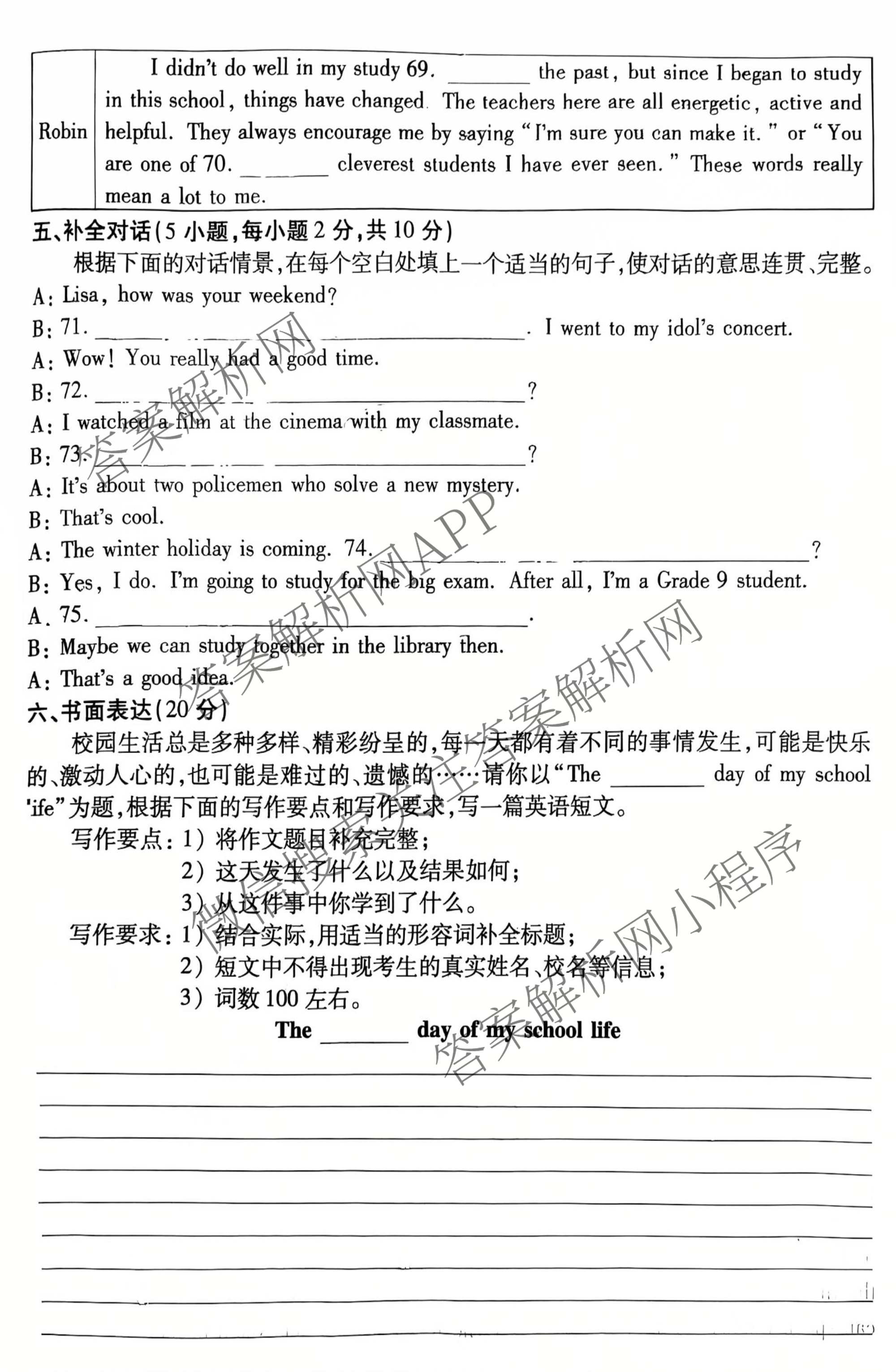 河南省周口市2025-2026学年上学期学情调研作业(五)九年级英语(人教版)试题,目前衡水金卷先享题答案网已经汇总了河南省周口市2025-2026学年上学期学情调研作业(五)九年级英语(人教版)试题的各科答案和试卷,获取更多地方模拟答案解析,请在关注本站。