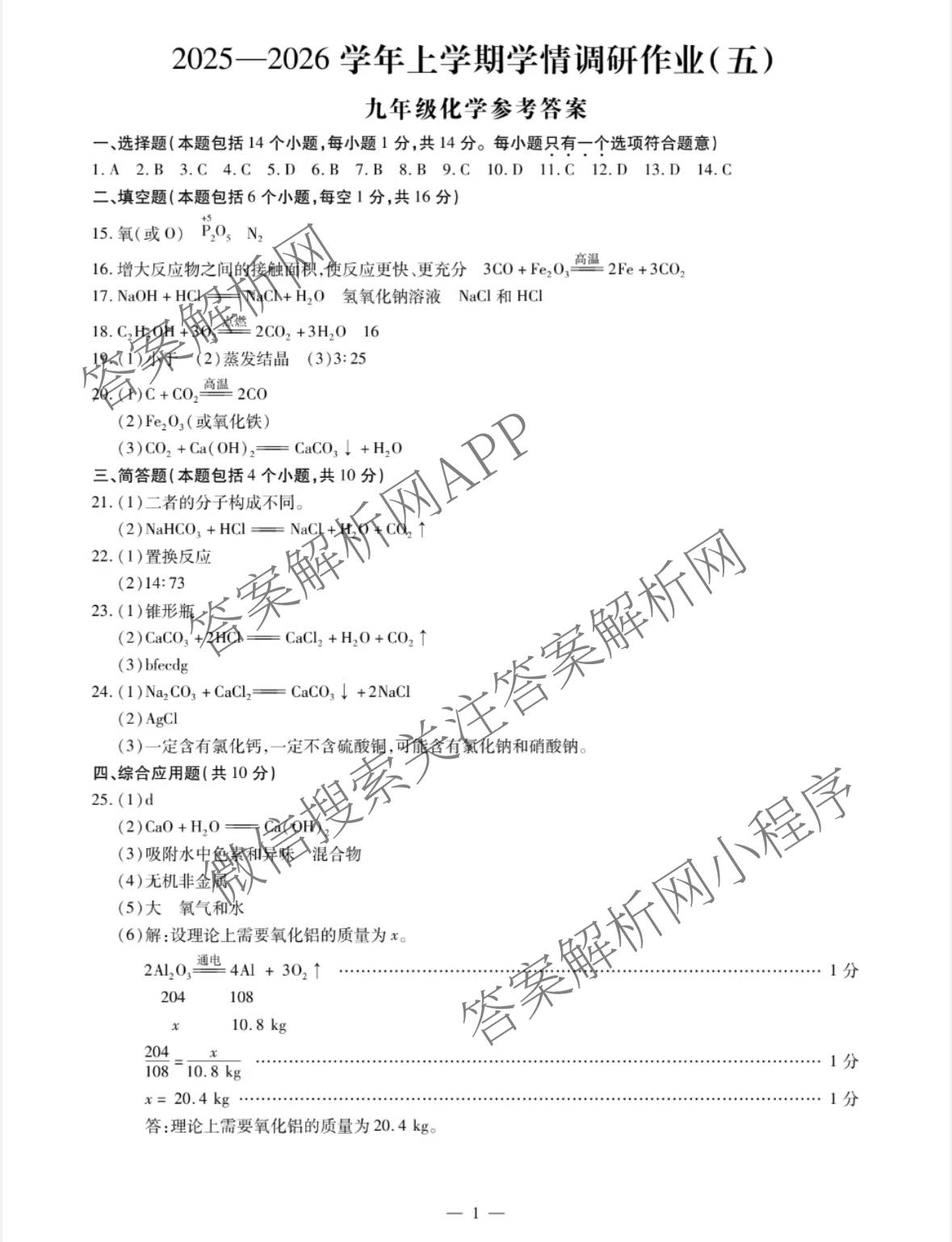 - 2025~2026河南省周口市学年上学期学情调研作业(五)[九年级]化学答案