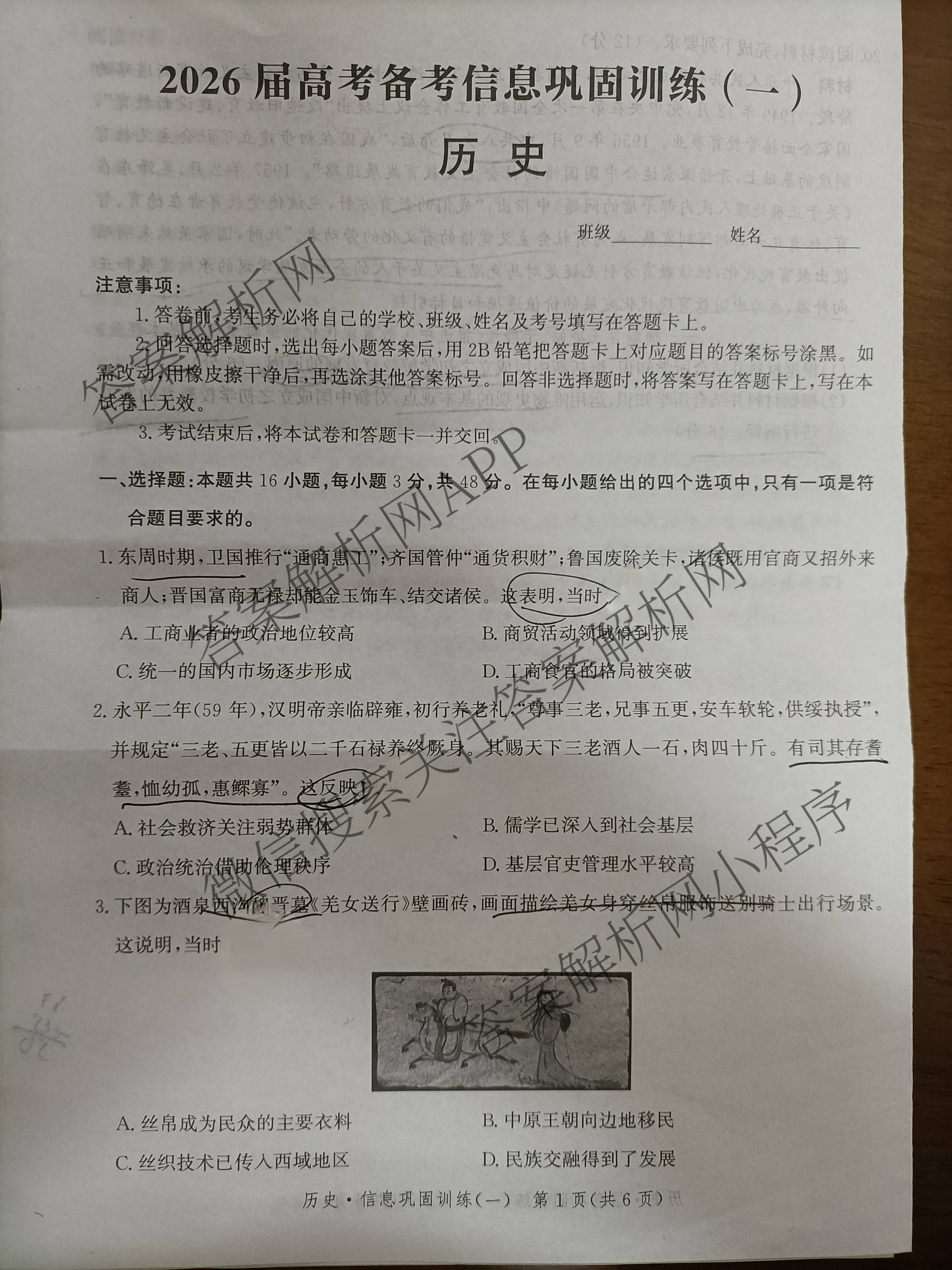 2026届高考备考信息巩固训练(一)高三历史试题,目前衡水金卷先享题答案网已经汇总了2026届高考备考信息巩固训练(一)高三历史试题的各科答案和试卷,获取更多地方模拟答案解析,请在关注本站。