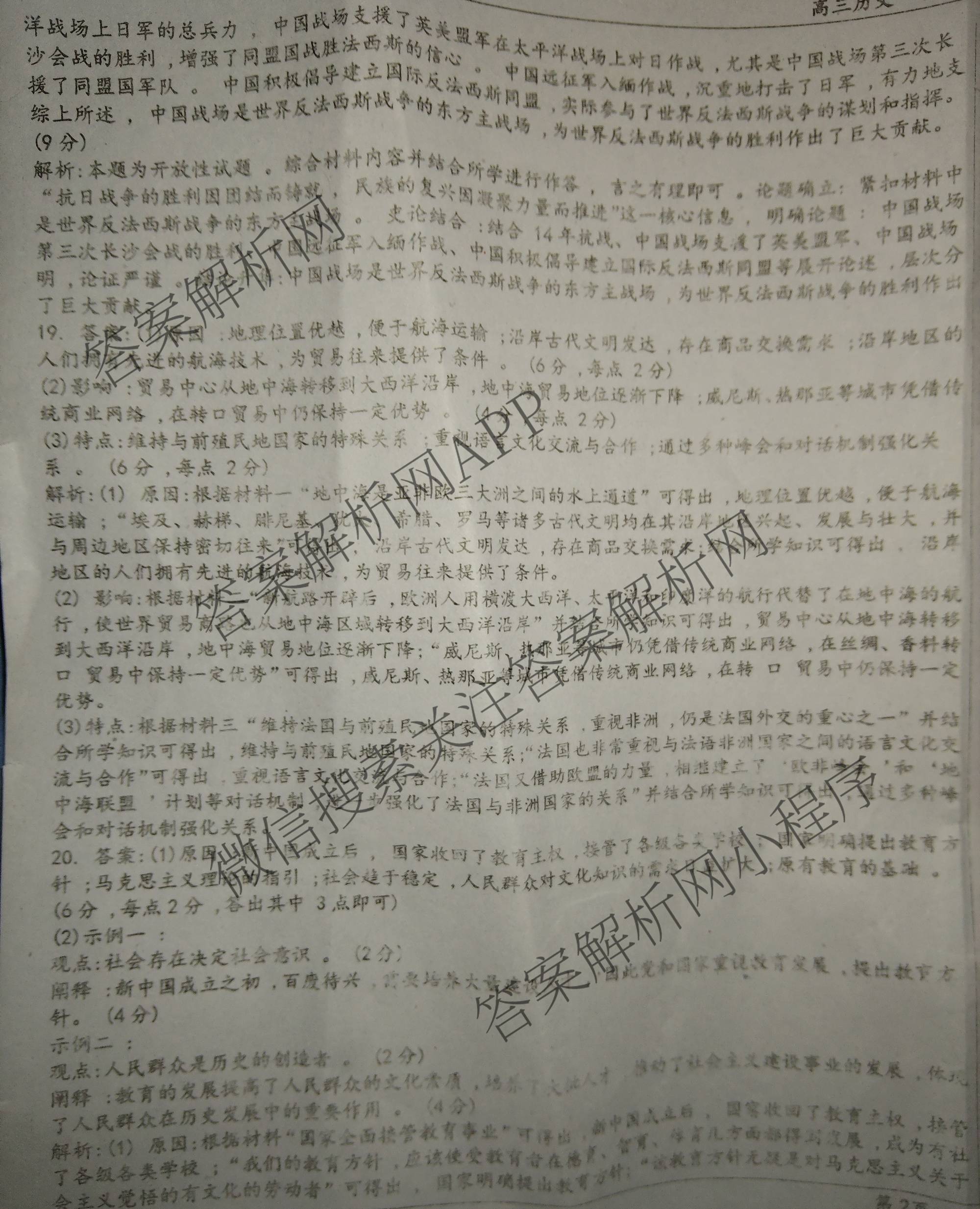 - 2026届高三高考备考信息巩固训练(一)历史答案