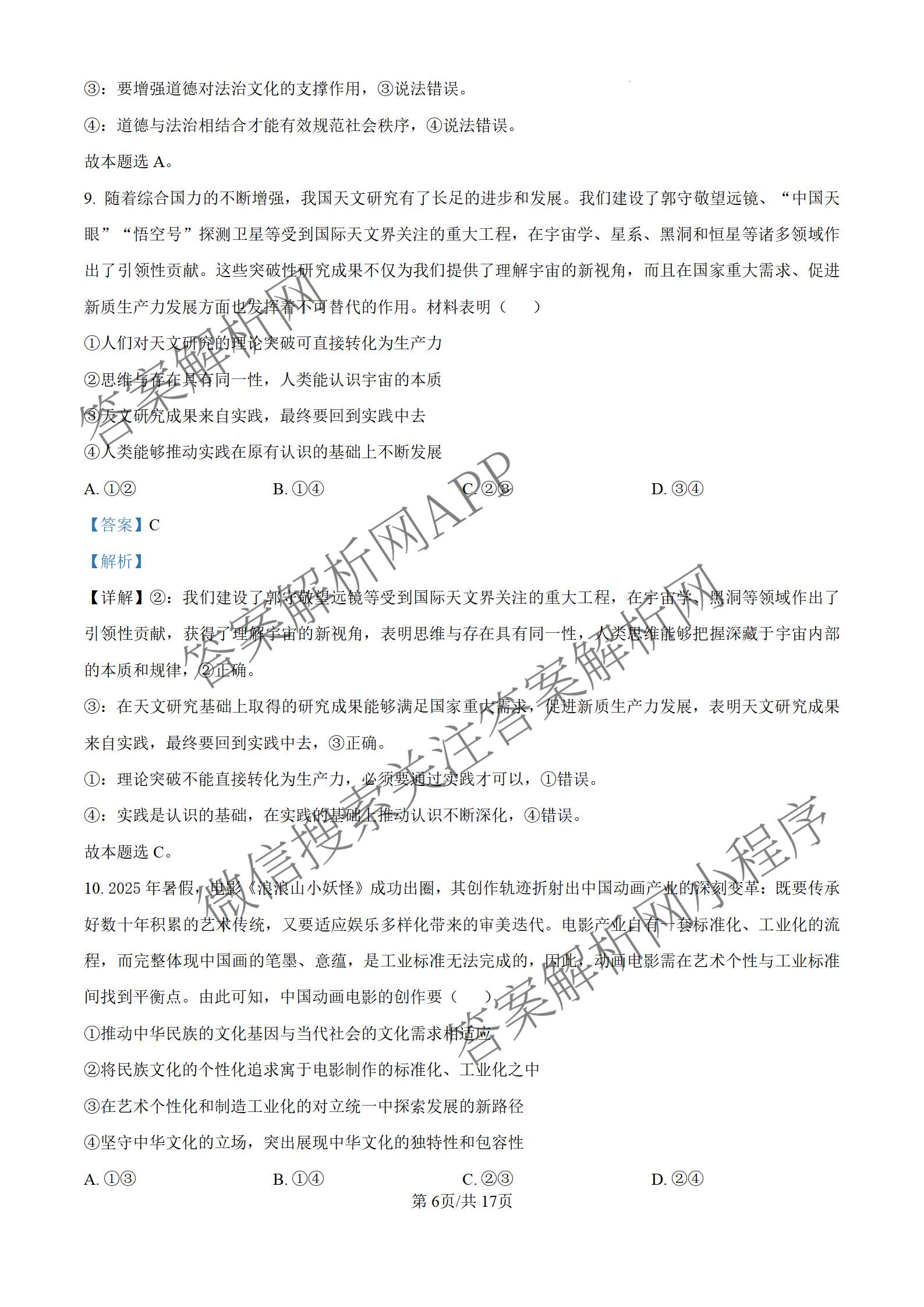 2026届高考备考信息巩固训练(一)[高三]政治答案