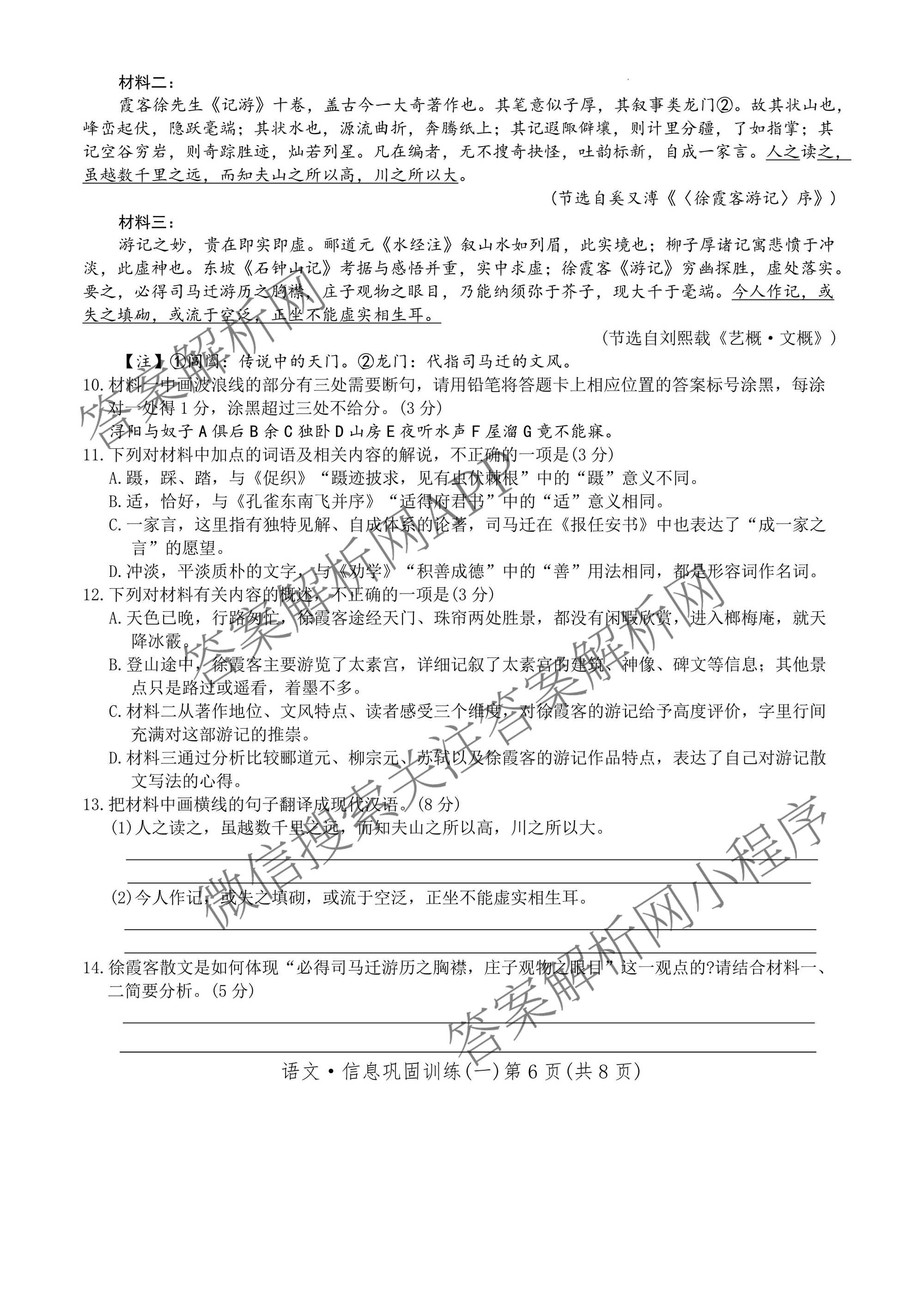 2026届高考备考信息巩固训练(一)高三语文试题,目前衡水金卷先享题答案网已经汇总了2026届高考备考信息巩固训练(一)高三语文试题的各科答案和试卷,获取更多地方模拟答案解析,请在关注本站。