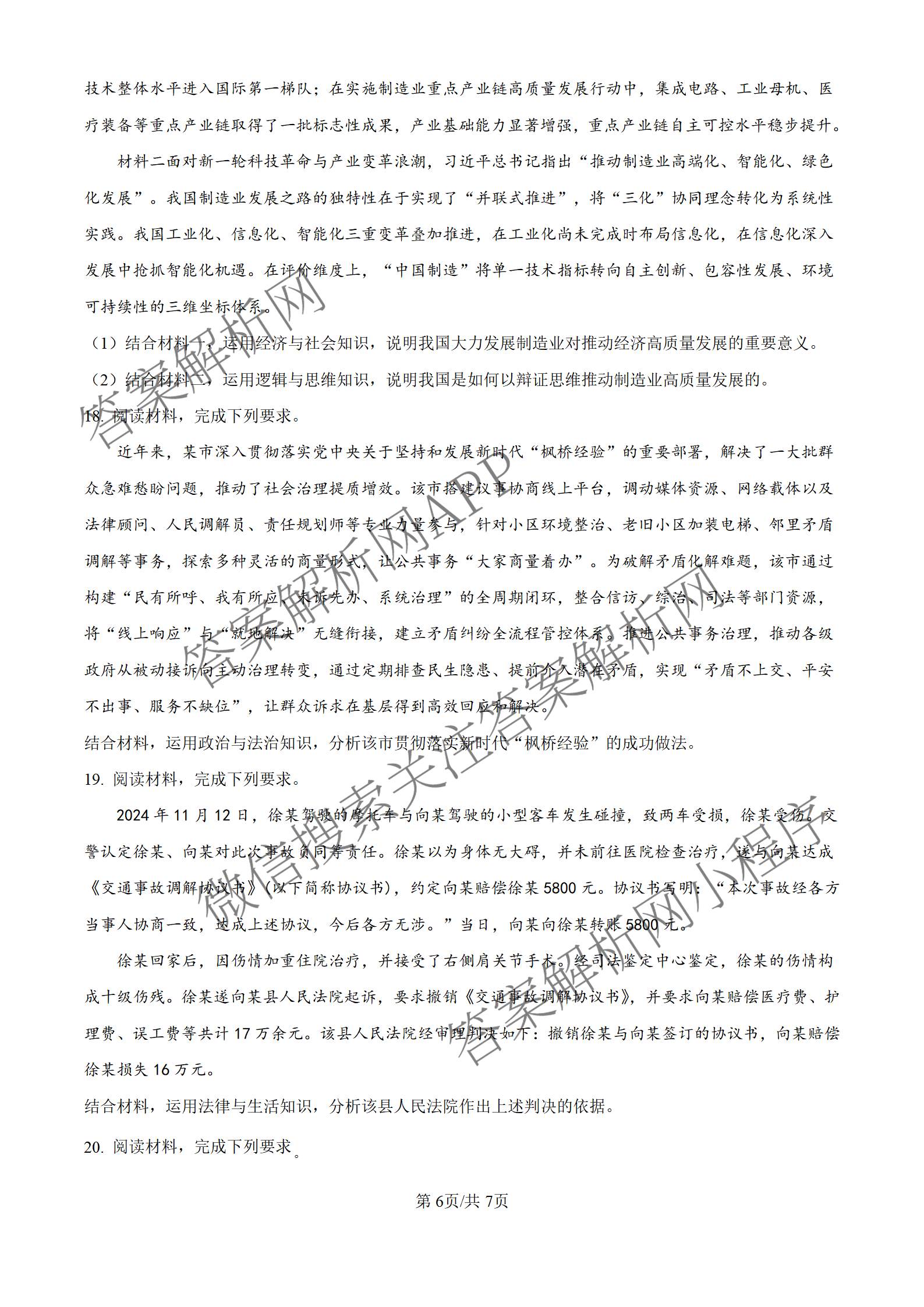 2026届(高三)高考备考信息巩固训练(二)政治试题