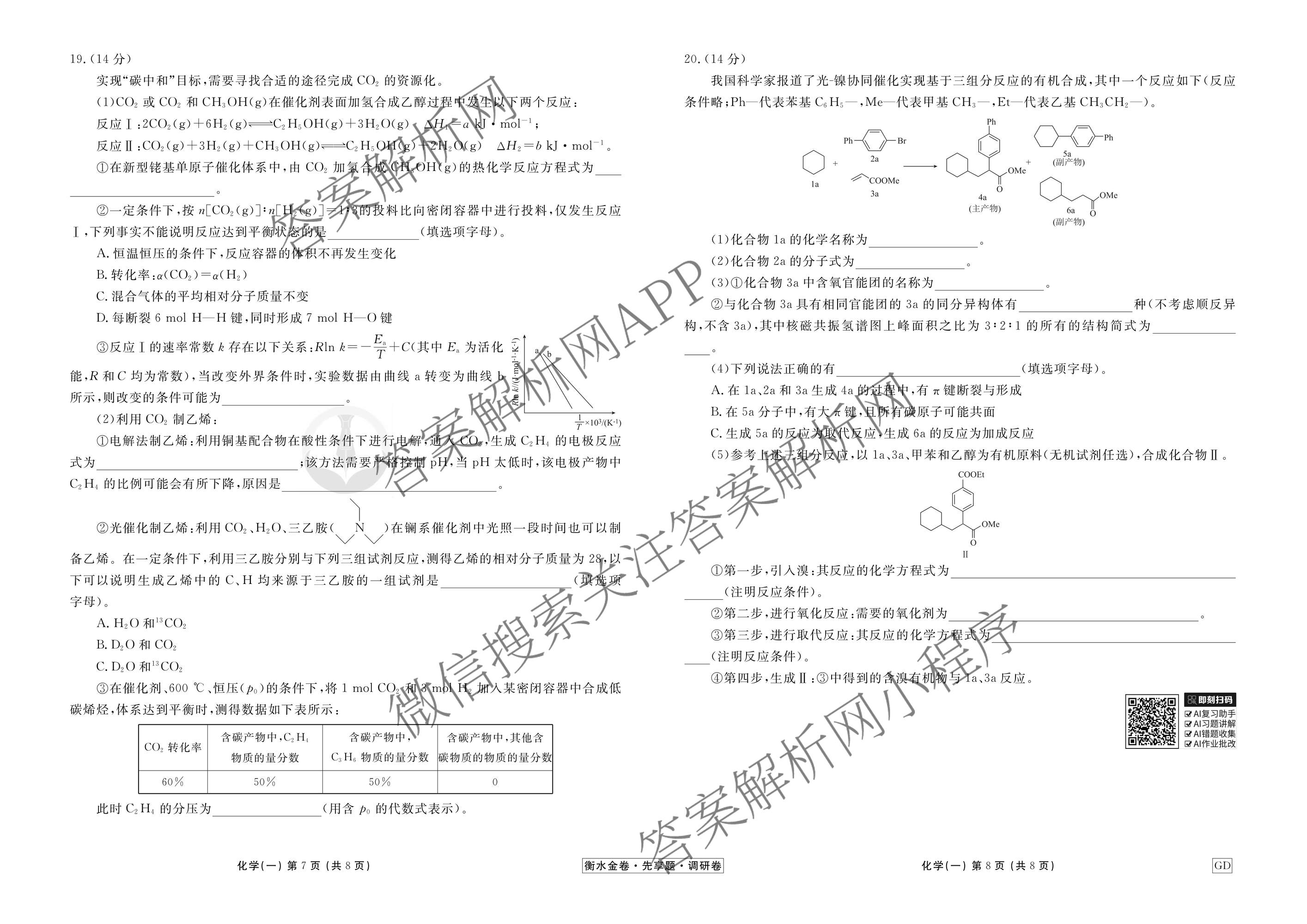 - (高三)(衡水金卷先享题)·调研卷·2026年普通高中学业水平选择性考试模拟试题(一)1化学(GS)试题