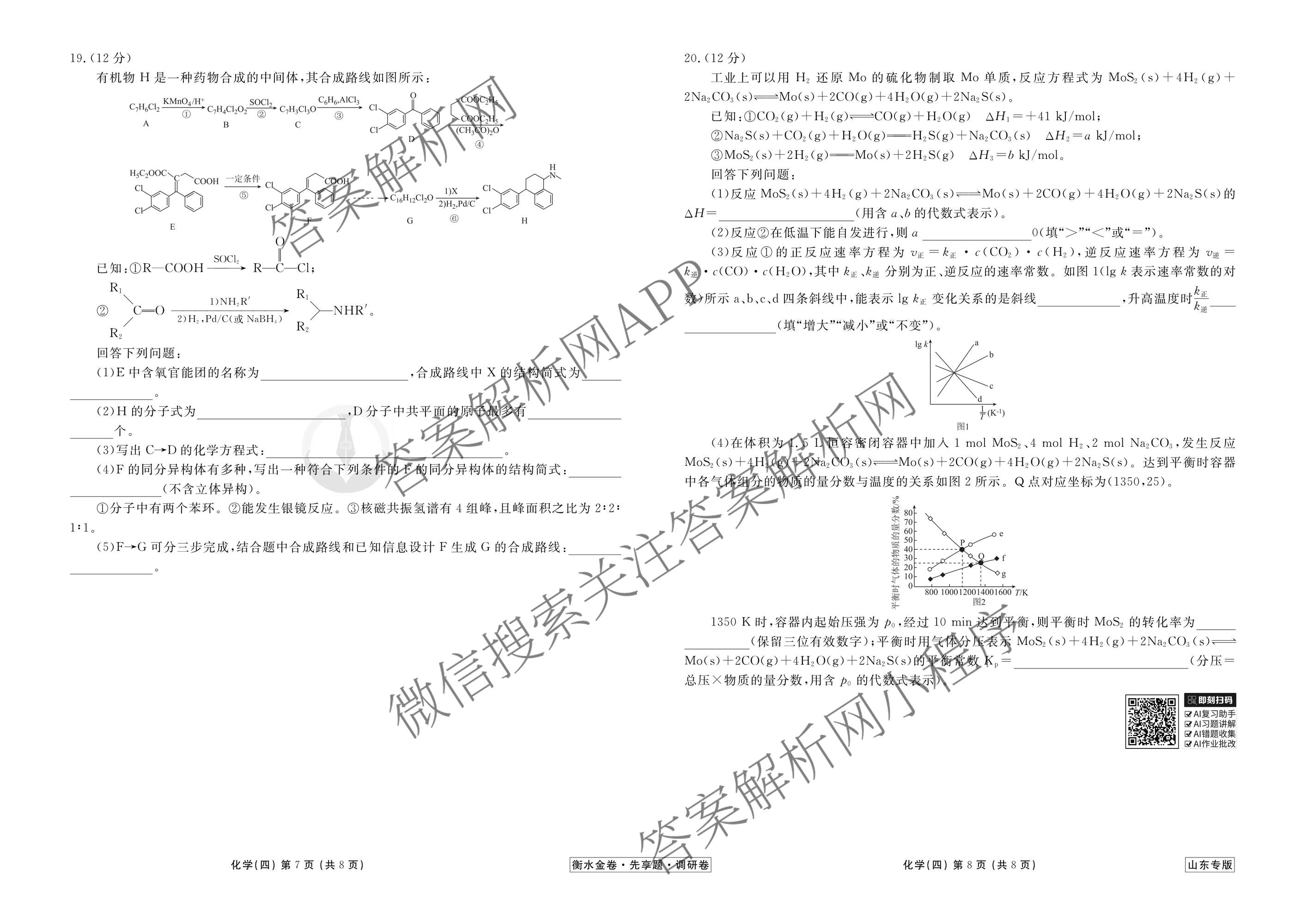 - (高三)[衡水金卷先享题]调研卷2026年普通高中学业水平等级考试模拟试题(四)4化学(山东专版)答案