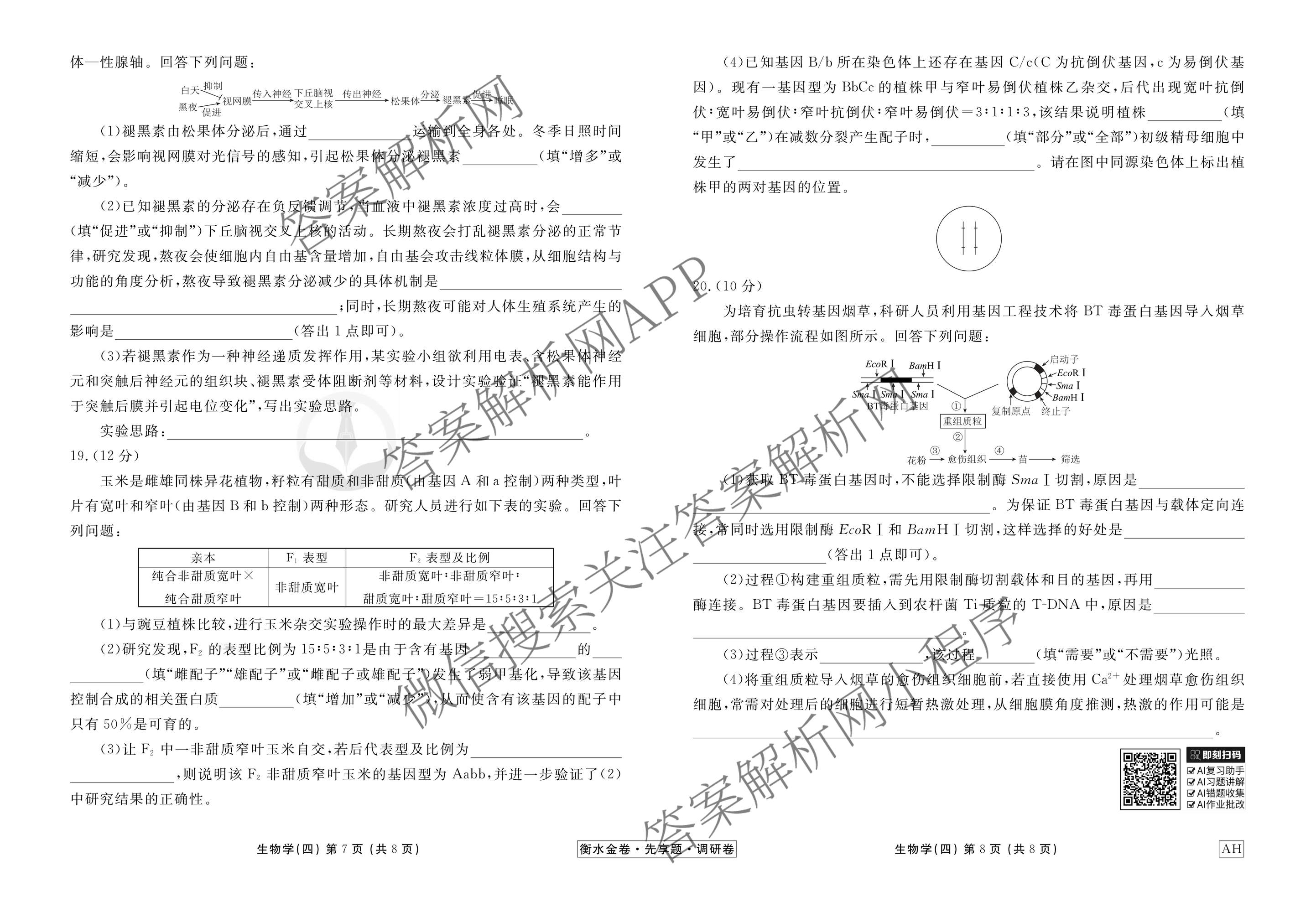 衡水金卷先享题·调研卷·2026年普通高中学业水平选择性考试模拟试题(四)4生物(AH)试题,目前衡水金卷先享题答案网已经汇总了衡水金卷先享题·调研卷·2026年普通高中学业水平选择性考试模拟试题(四)4生物(AH)试题的各科答案和试卷,获取更多衡水金卷先享题答案解析,请在关注本站。