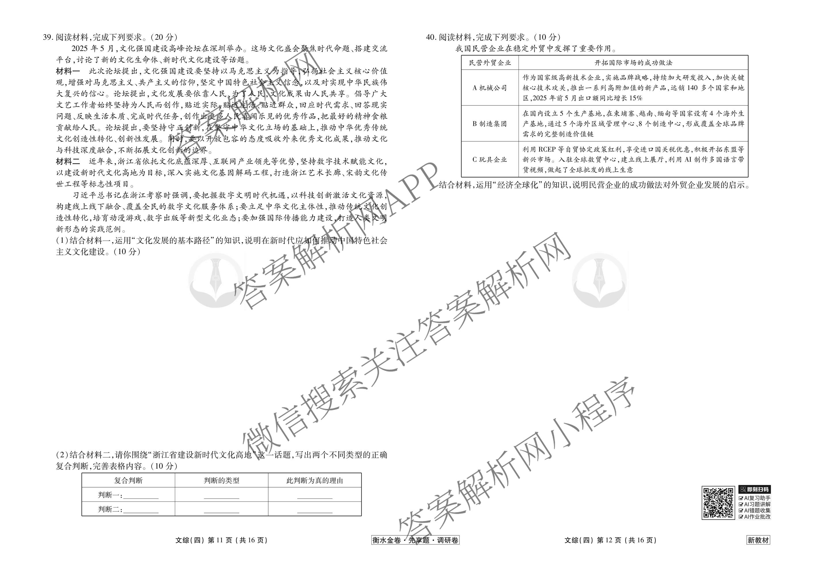 衡水金卷先享题·调研卷·2026年普通高等学校招生全国统一考试模拟(四)4文综(新教材)试题,目前衡水金卷先享题答案网已经汇总了衡水金卷先享题·调研卷·2026年普通高等学校招生全国统一考试模拟(四)4文综(新教材)试题的各科答案和试卷,获取更多衡水金卷先享题答案解析,请在关注本站。