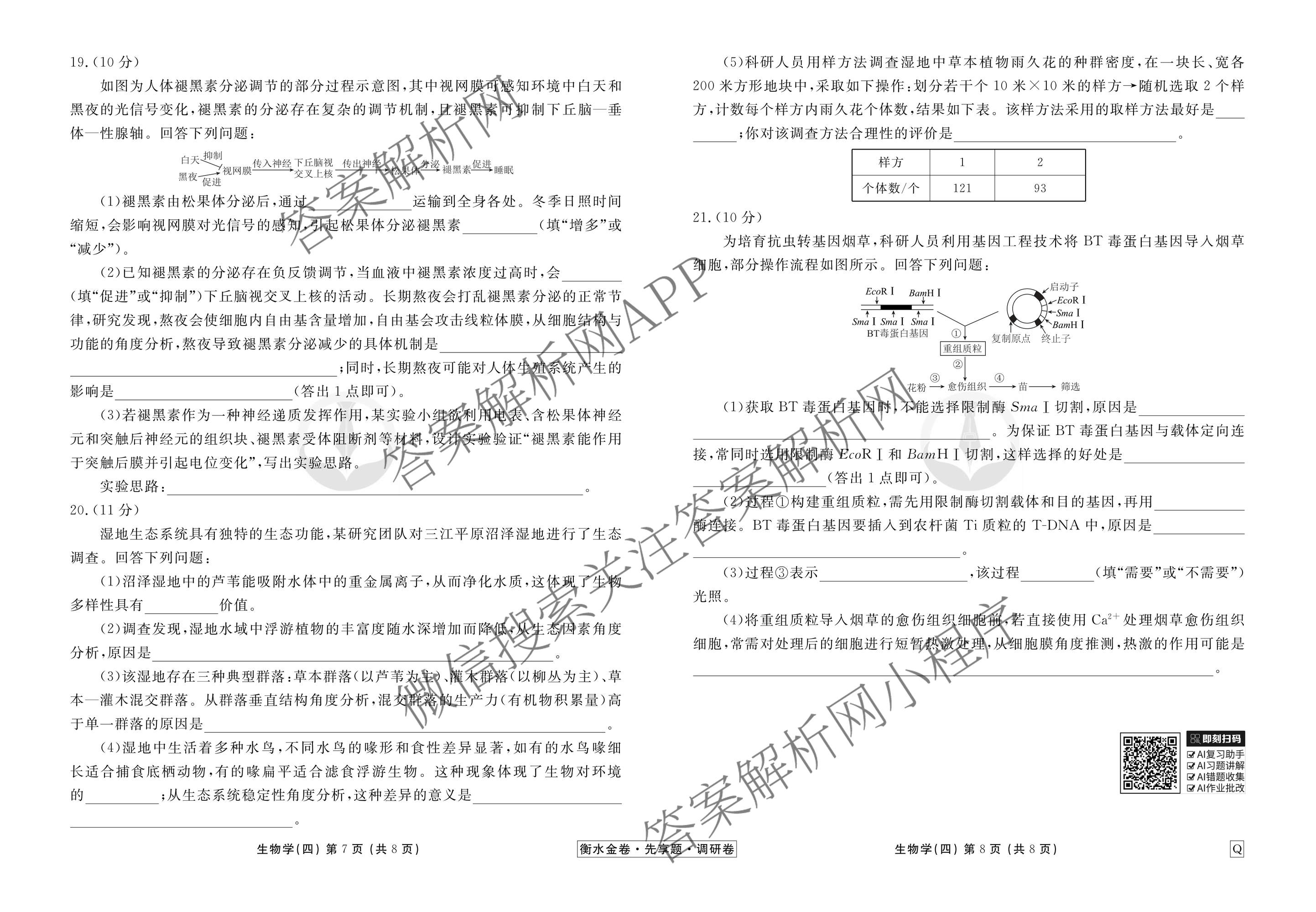 衡水金卷先享题·调研卷·2026年普通高中学业水平选择性考试模拟试题(四)4生物(Q)试题,目前衡水金卷先享题答案网已经汇总了衡水金卷先享题·调研卷·2026年普通高中学业水平选择性考试模拟试题(四)4生物(Q)试题的各科答案和试卷,获取更多衡水金卷先享题答案解析,请在关注本站。