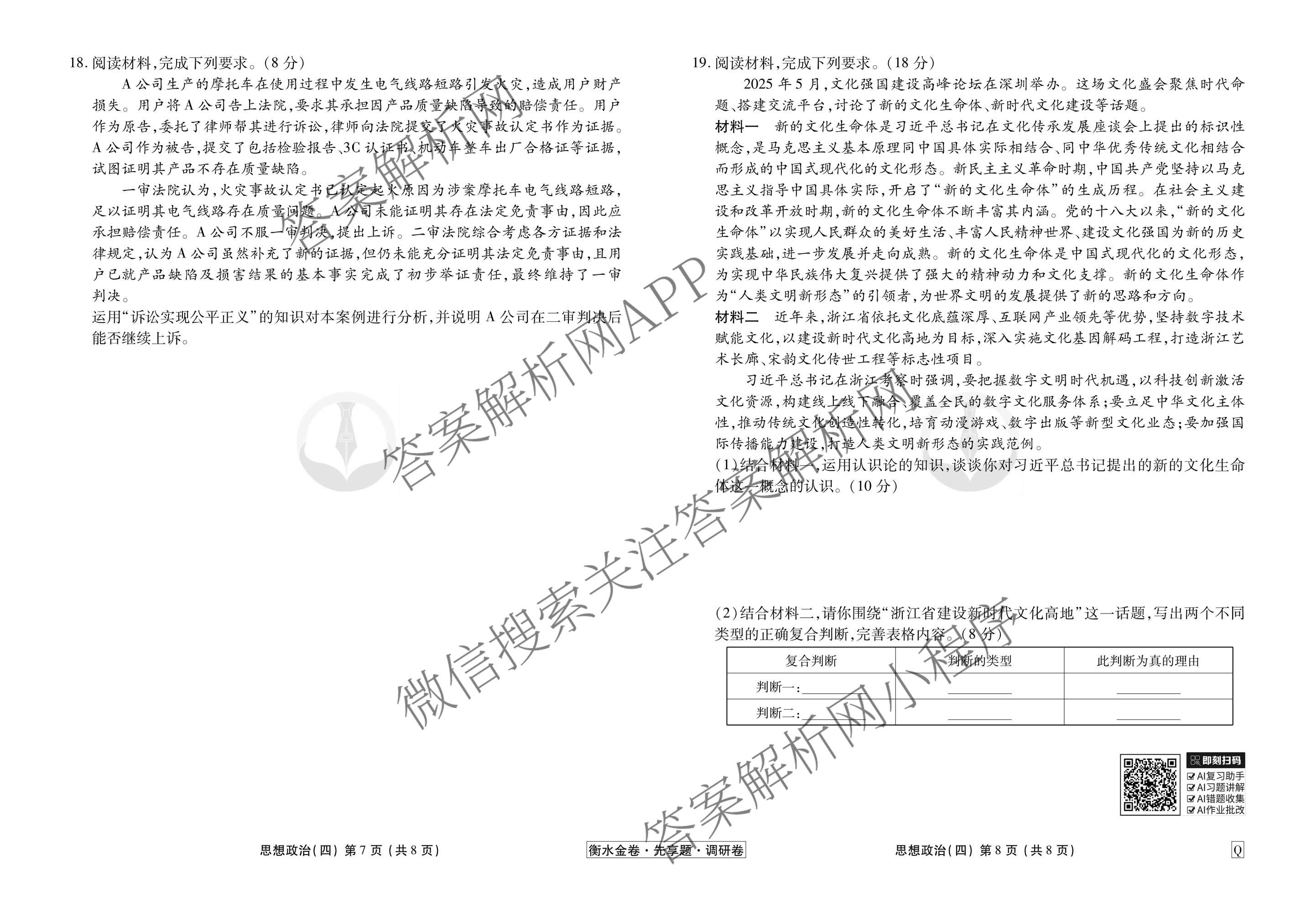 - (衡水金卷先享题)·调研卷·2026年普通高中学业水平选择性考试模拟试题(四)4政治(AH)答案