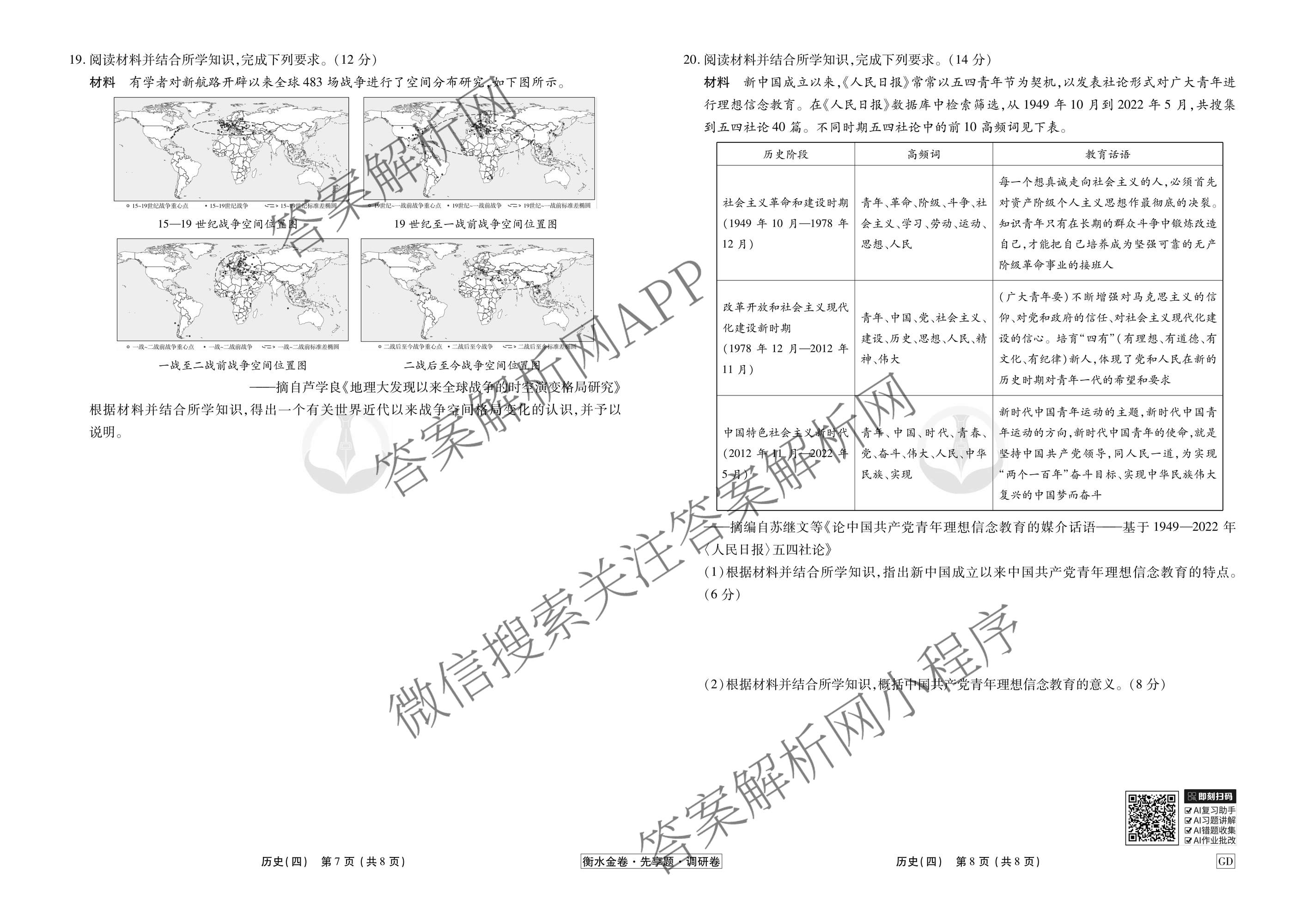 - [衡水金卷先享题]调研卷2026年普通高中学业水平等级考试模拟试题(四)4历史(山东专版)答案