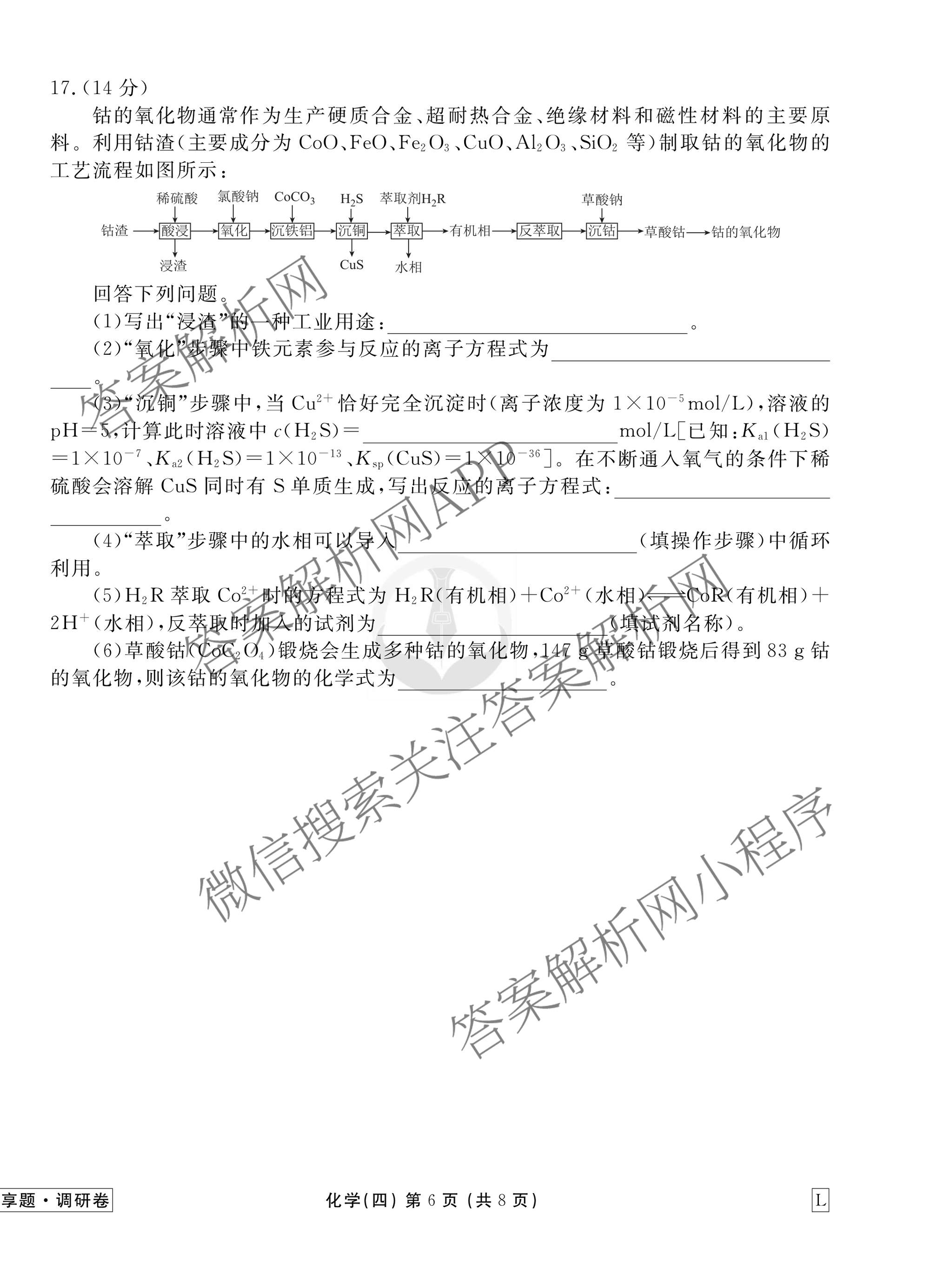 - [衡水金卷先享题]调研卷2026年普通高中学业水平选择性考试模拟试题(四)4化学(Q)答案