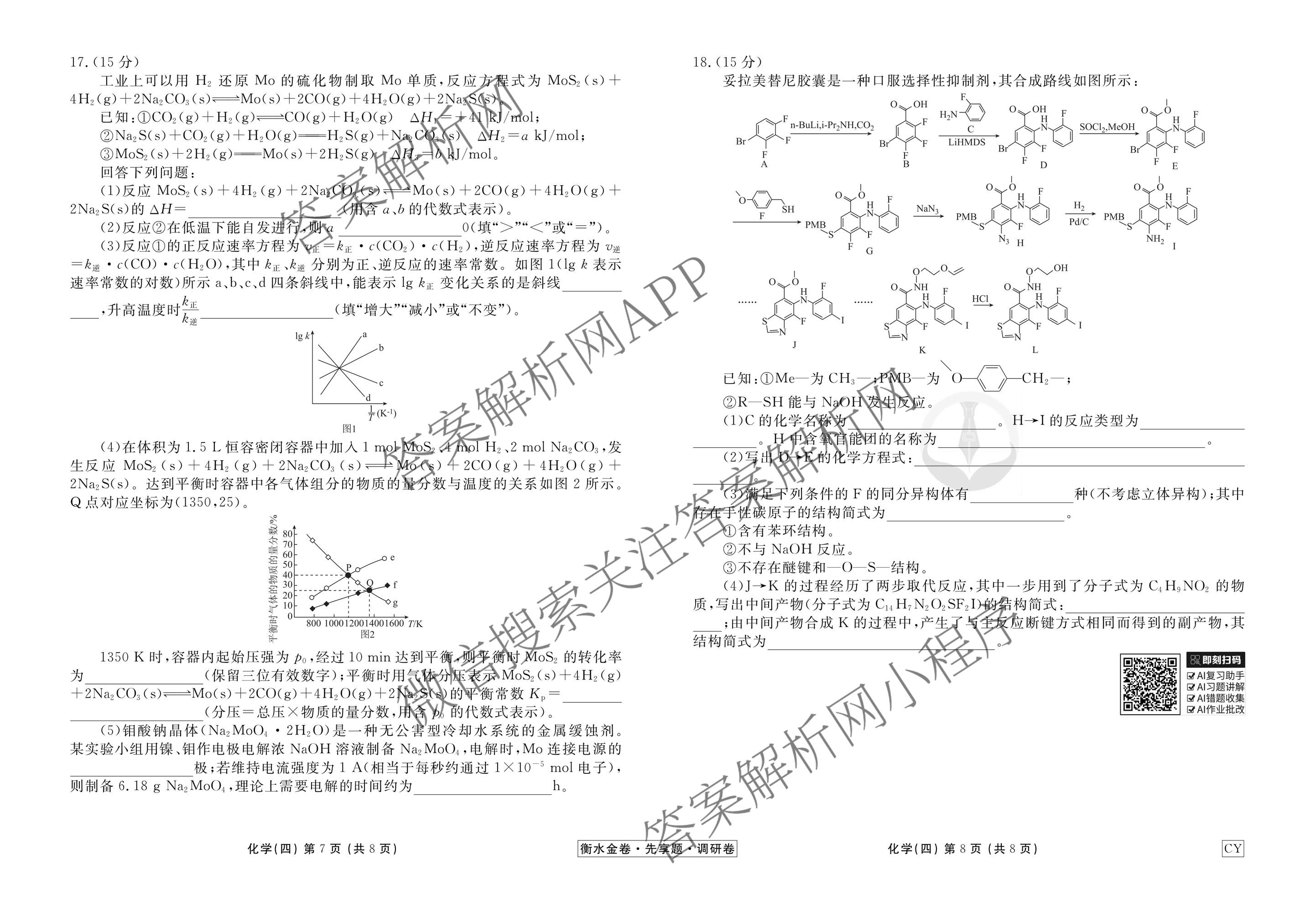 - (高三)(衡水金卷先享题)·调研卷·2026年普通高中学业水平选择性考试模拟试题(四)4化学(Q)答案
