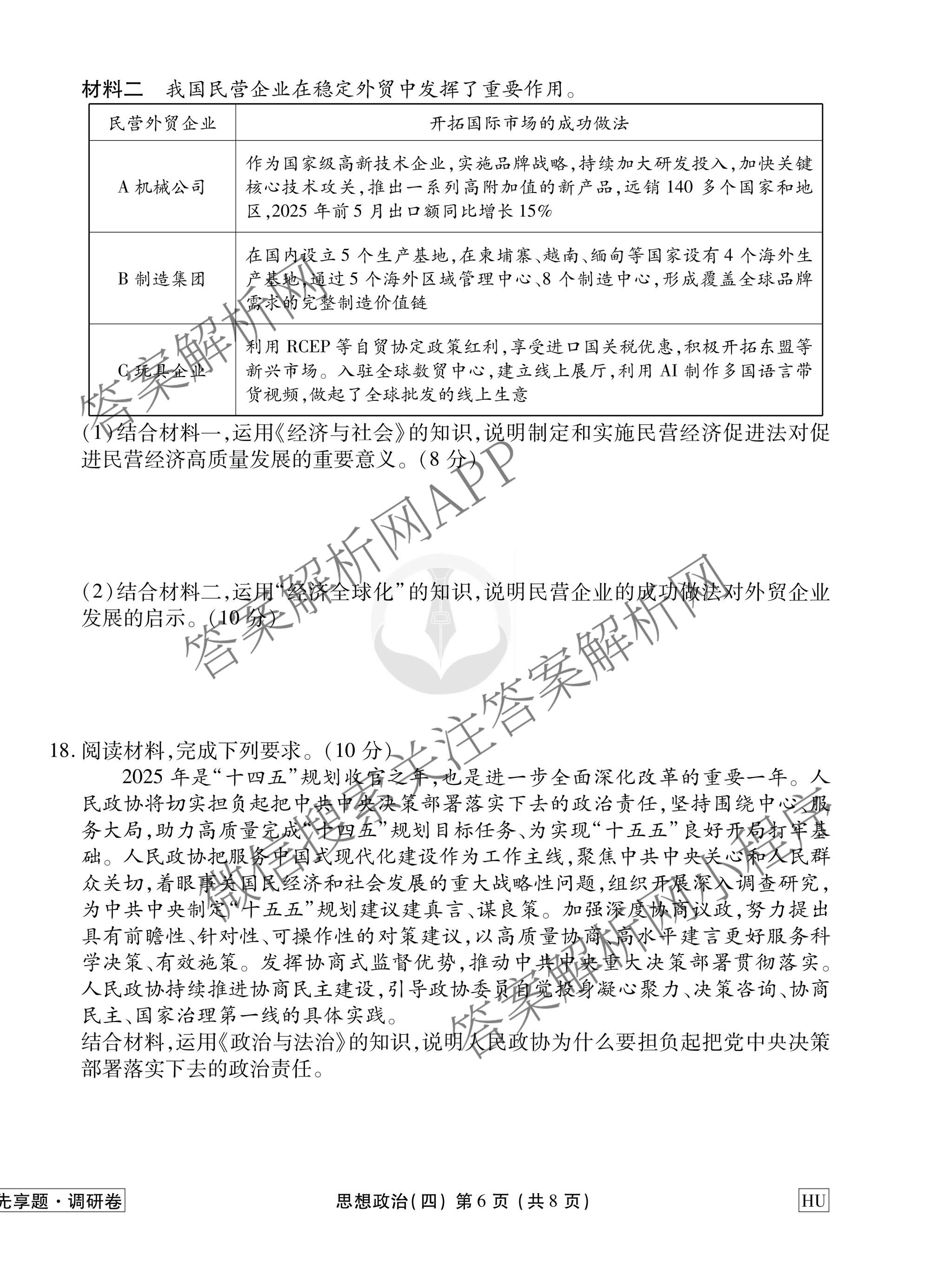 衡水金卷先享题·调研卷·2026年普通高中学业水平选择性考试模拟试题(四)4政治(HU)试题,目前衡水金卷先享题答案网已经汇总了衡水金卷先享题·调研卷·2026年普通高中学业水平选择性考试模拟试题(四)4政治(HU)试题的各科答案和试卷,获取更多衡水金卷先享题答案解析,请在关注本站。