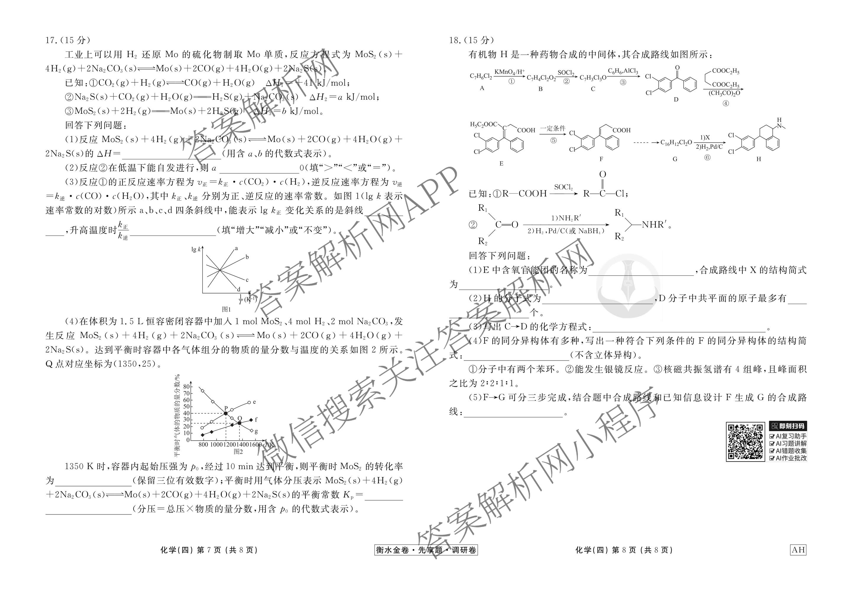 - 衡水金卷先享题调研卷2026年普通高中学业水平选择性考试模拟试题(四)4化学(AH)答案