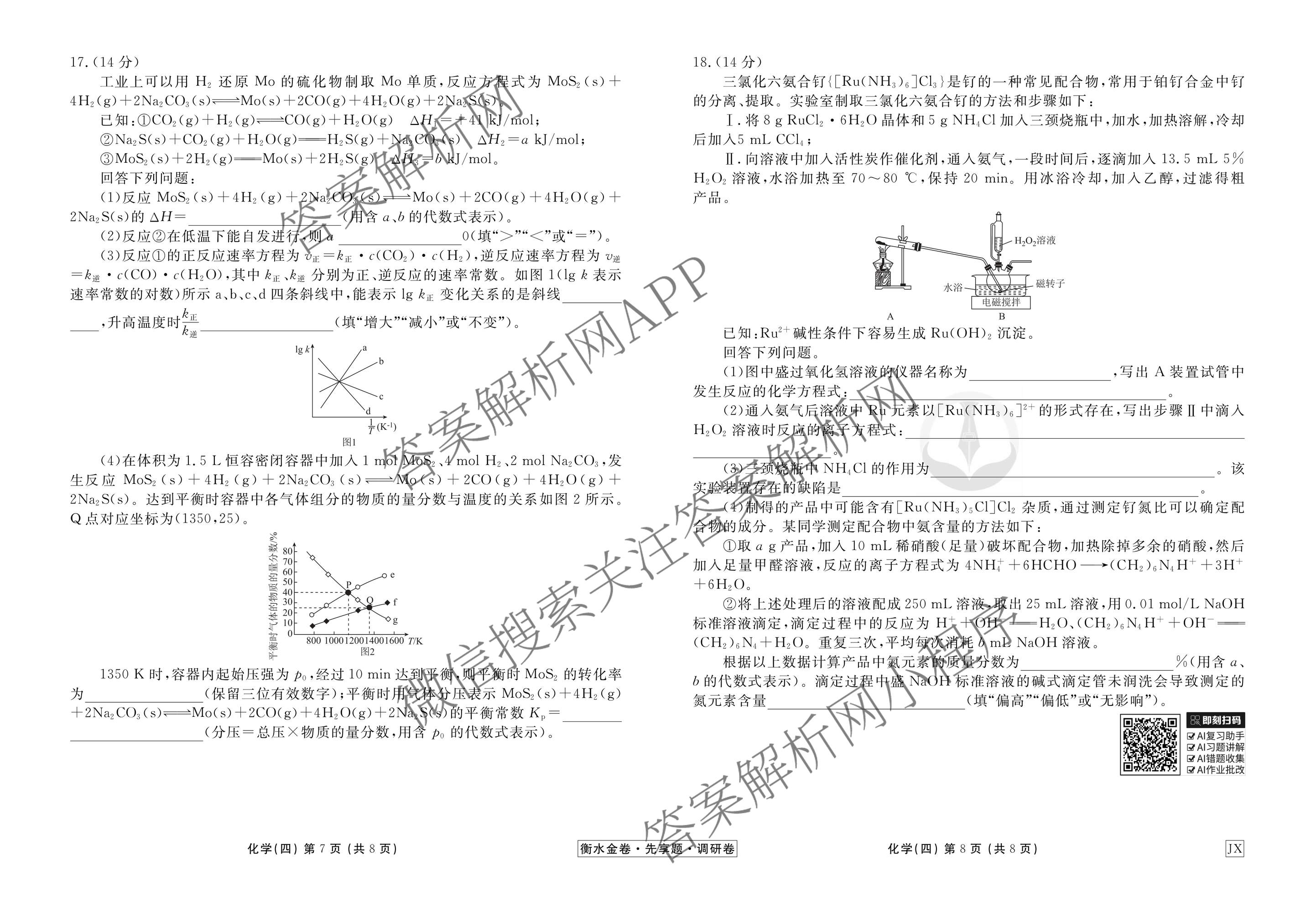 - [衡水金卷先享题]·调研卷·2026年普通高中学业水平选择性考试模拟试题(四)4化学(HN)答案