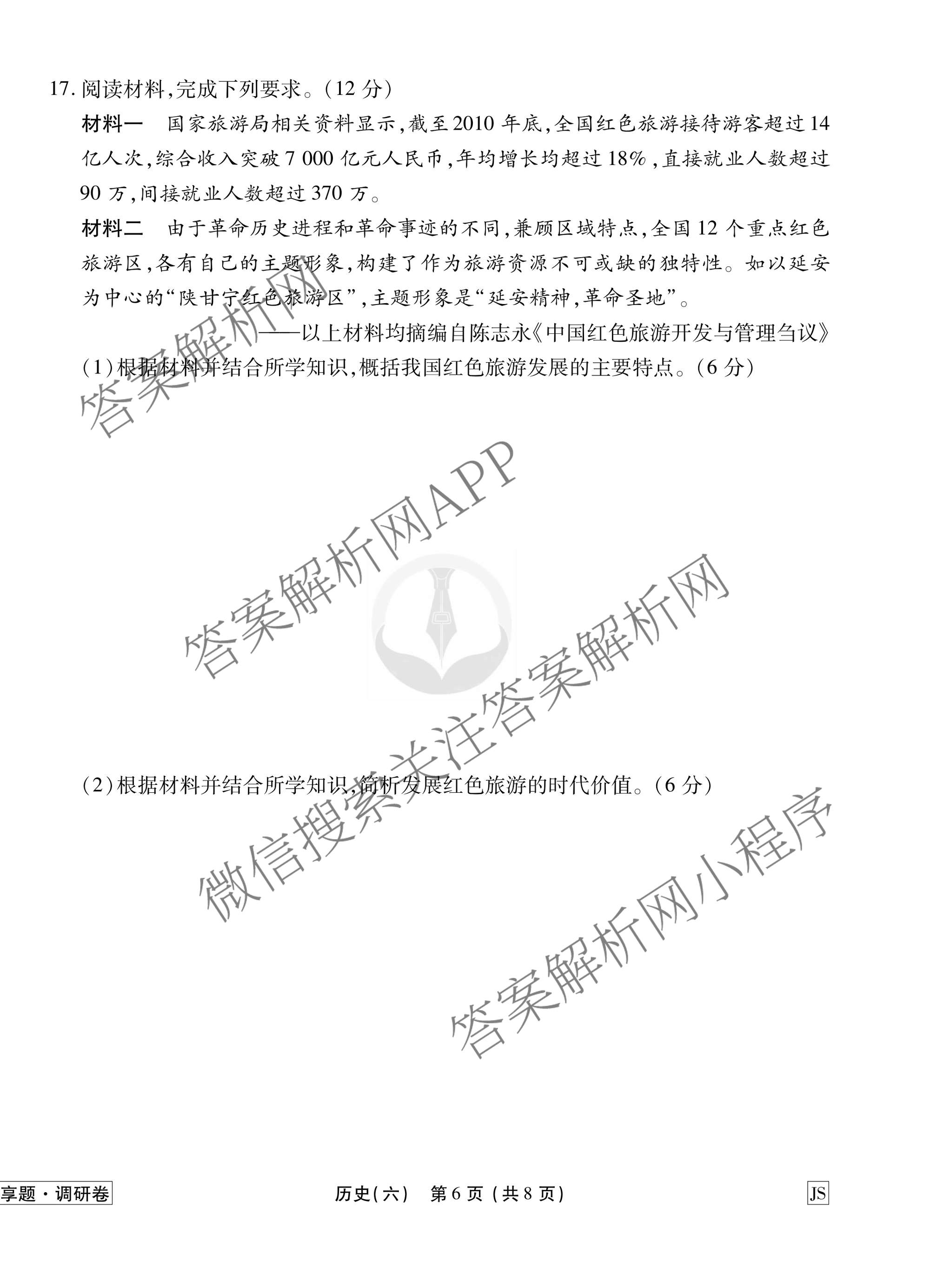 - 衡水金卷先享题·调研卷·2026年普通高中学业水平选择性考试模拟试题(六)6历史(JS)答案