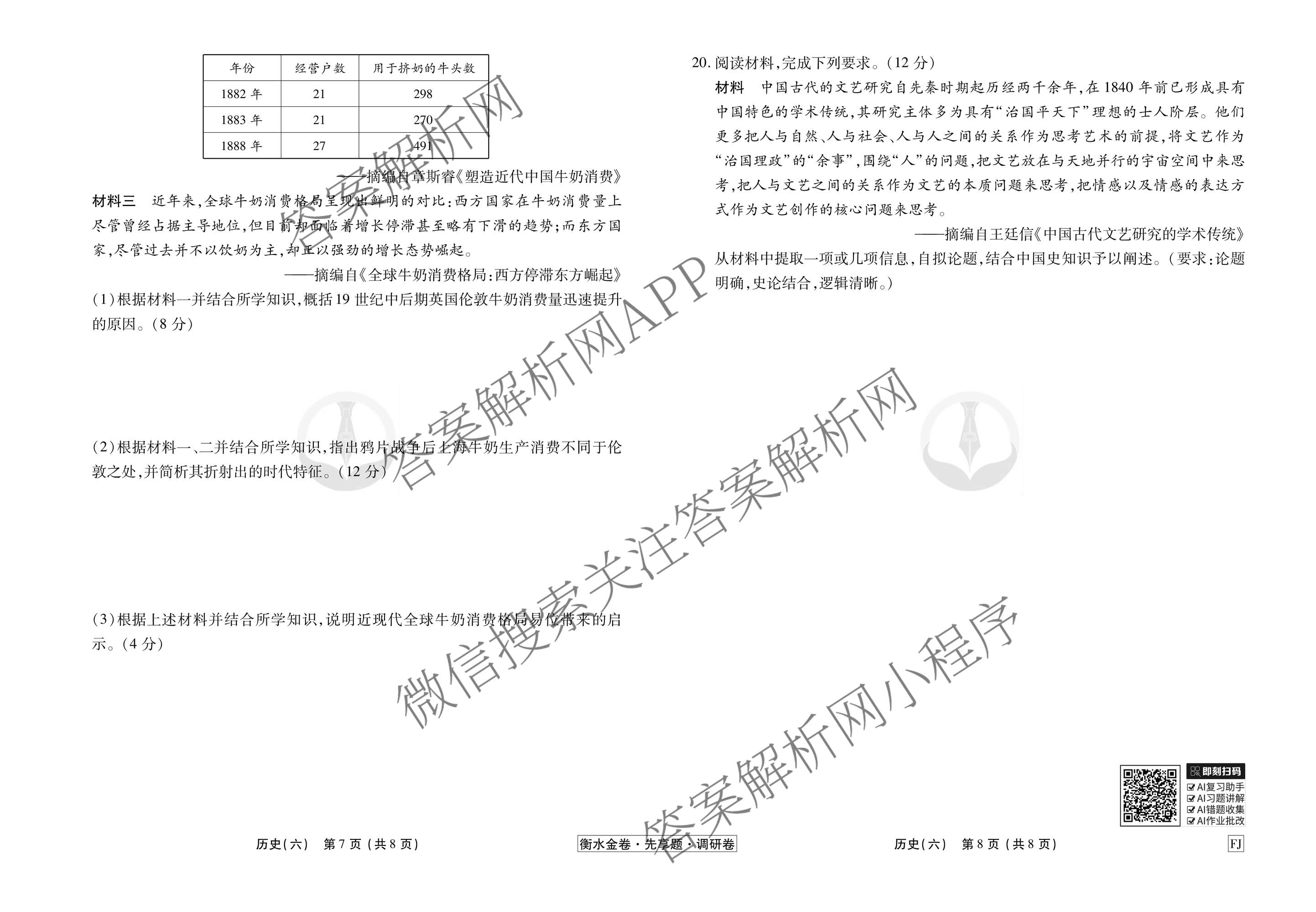 - [衡水金卷先享题]调研卷2026年普通高中学业水平选择性考试模拟试题(六)6历史(AH)答案
