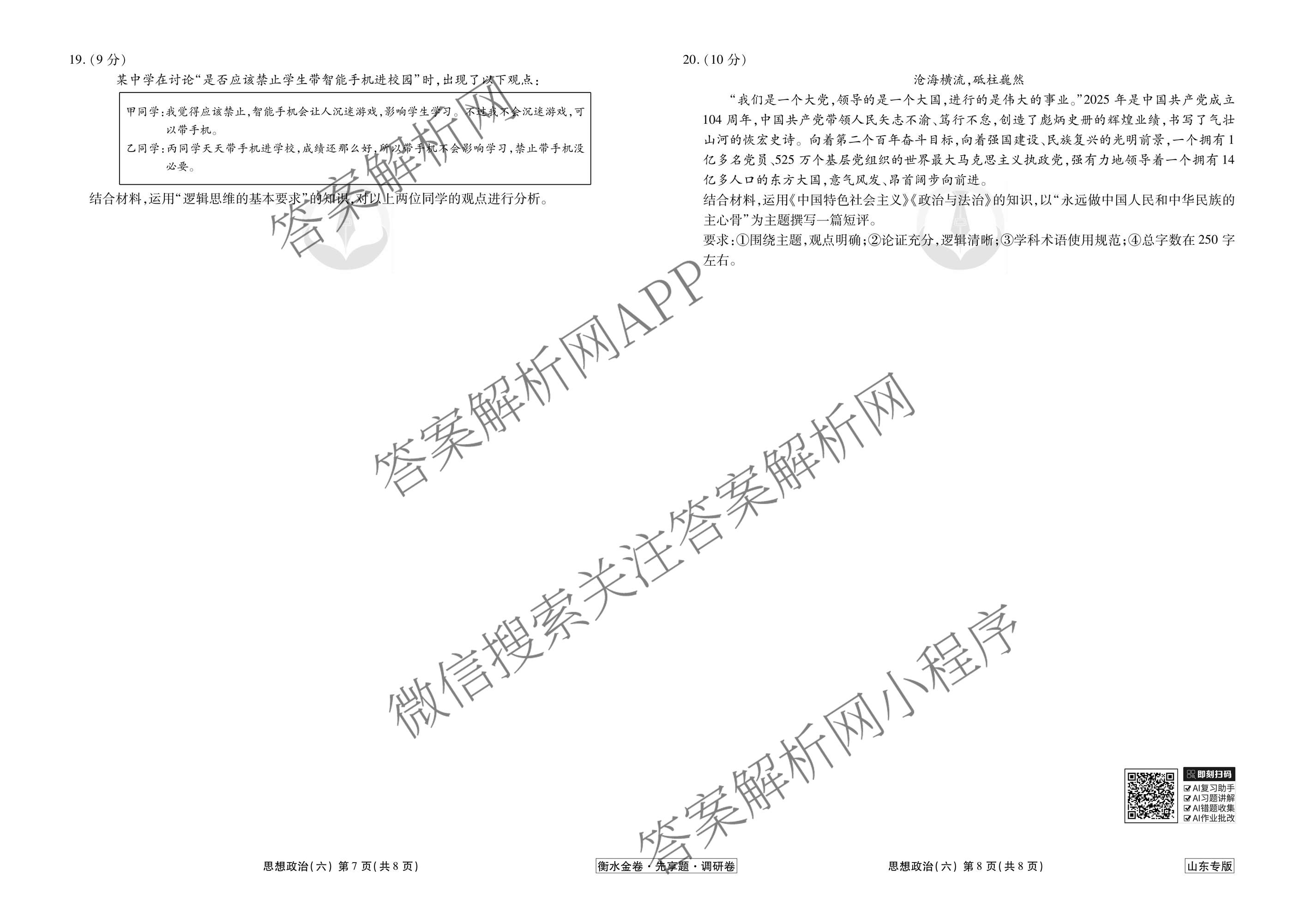 衡水金卷先享题·调研卷·2026年普通高中学业水平等级考试模拟试题(六)6政治(山东专版)试题,目前衡水金卷先享题答案网已经汇总了衡水金卷先享题·调研卷·2026年普通高中学业水平等级考试模拟试题(六)6政治(山东专版)试题的各科答案和试卷,获取更多衡水金卷先享题答案解析,请在关注本站。