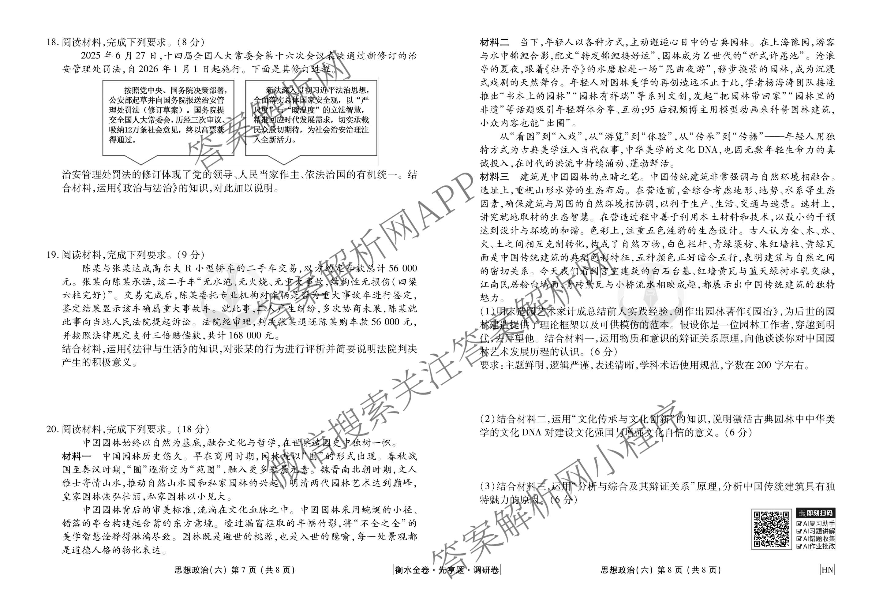 衡水金卷先享题·调研卷·2026年普通高中学业水平选择性考试模拟试题(六)6政治(HN)试题,目前衡水金卷先享题答案网已经汇总了衡水金卷先享题·调研卷·2026年普通高中学业水平选择性考试模拟试题(六)6政治(HN)试题的各科答案和试卷,获取更多衡水金卷先享题答案解析,请在关注本站。