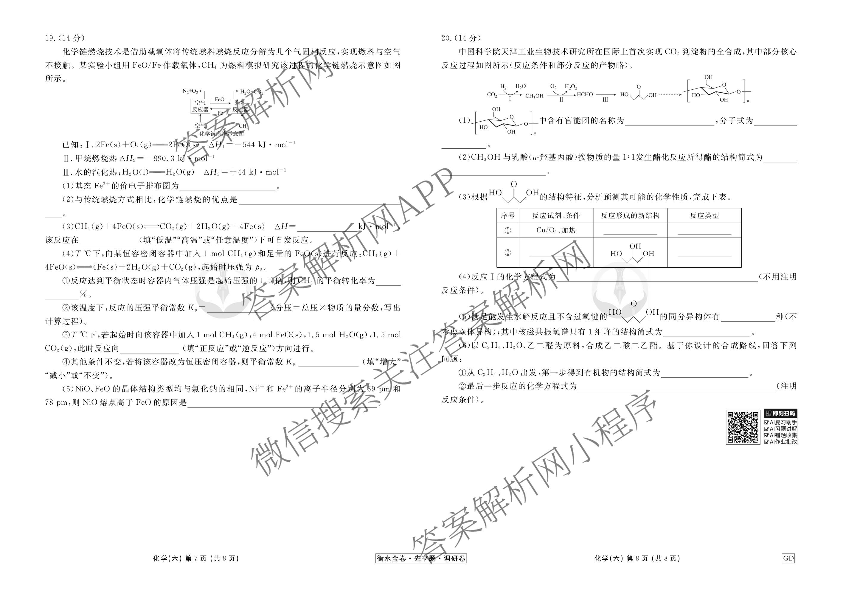 - 衡水金卷先享题调研卷2026年普通高中学业水平选择性考试模拟试题(六)6化学(GS)答案