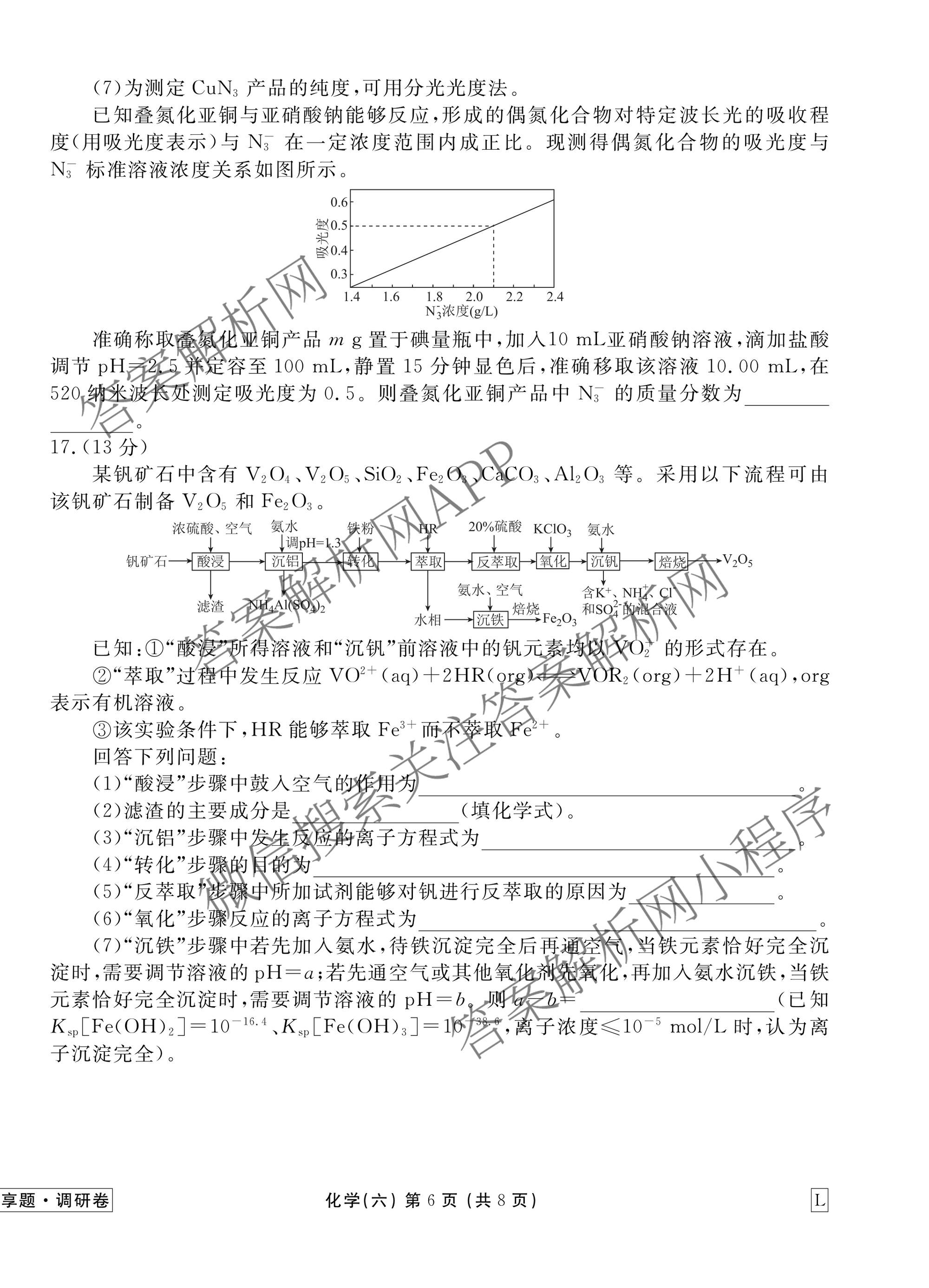 - [衡水金卷先享题]调研卷2026年普通高中学业水平选择性考试模拟试题(六)6化学(HU)答案