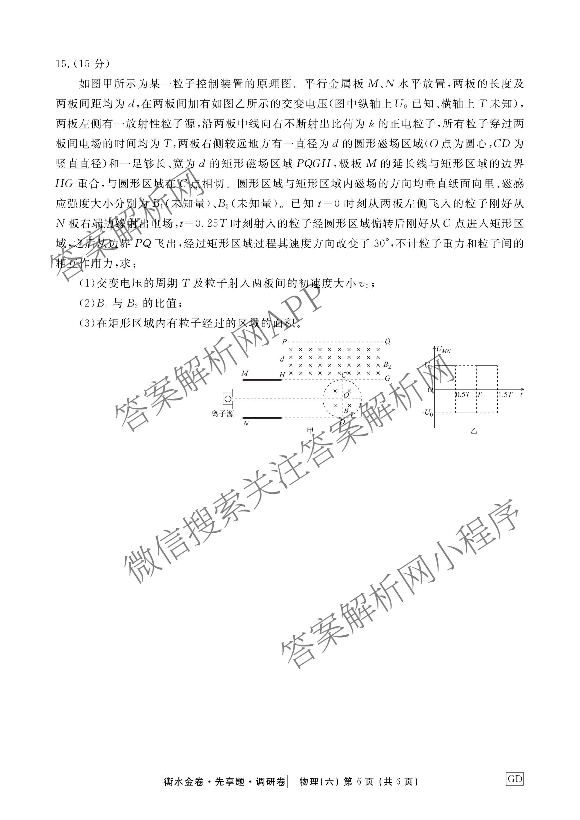 衡水金卷先享题·调研卷·2026年普通高中学业水平选择性考试模拟试题(六)6物理(GD)试题,目前衡水金卷先享题答案网已经汇总了衡水金卷先享题·调研卷·2026年普通高中学业水平选择性考试模拟试题(六)6物理(GD)试题的各科答案和试卷,获取更多衡水金卷先享题答案解析,请在关注本站。