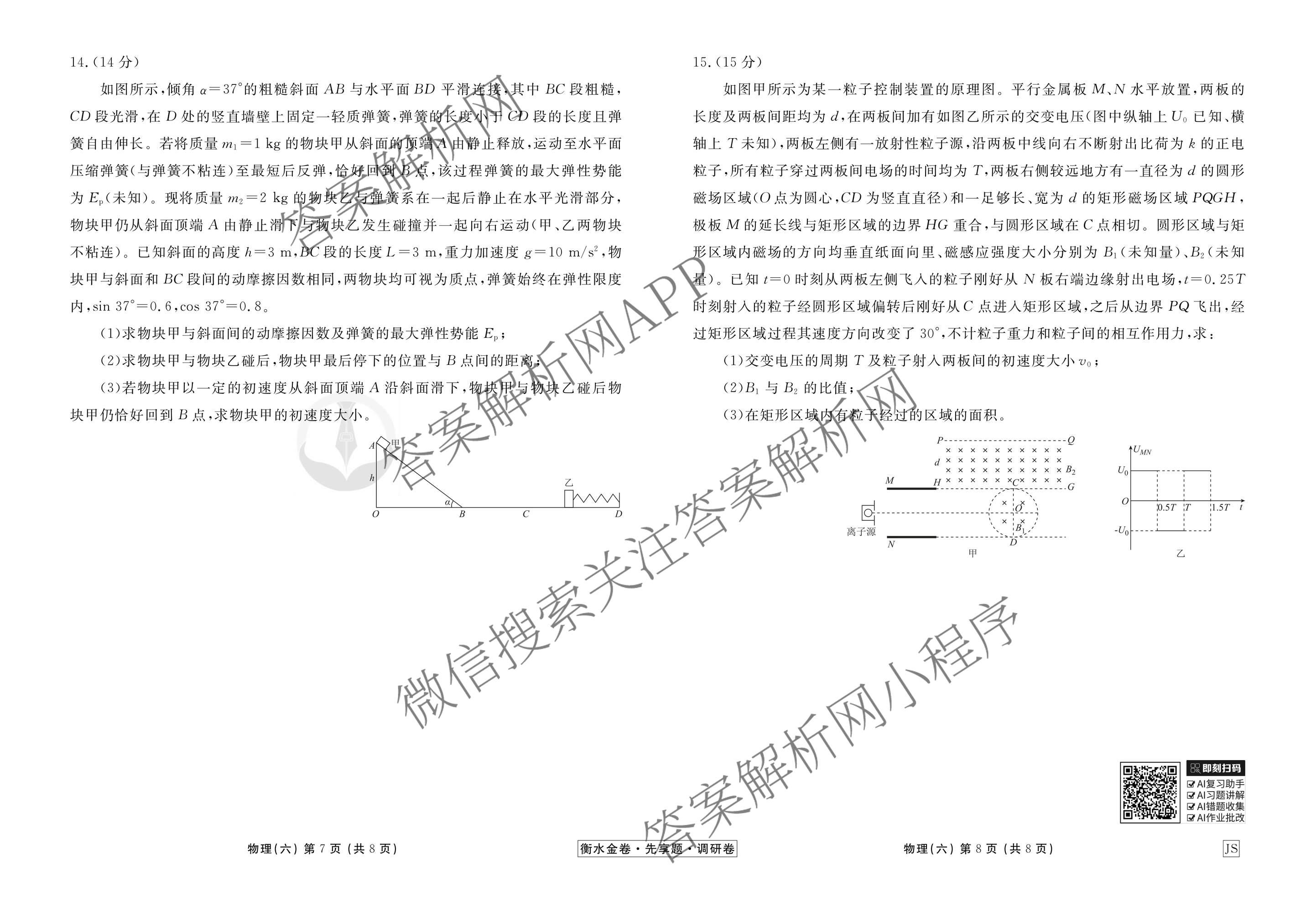 衡水金卷先享题·调研卷·2026年普通高中学业水平选择性考试模拟试题(六)6物理(JS)试题,目前衡水金卷先享题答案网已经汇总了衡水金卷先享题·调研卷·2026年普通高中学业水平选择性考试模拟试题(六)6物理(JS)试题的各科答案和试卷,获取更多衡水金卷先享题答案解析,请在关注本站。