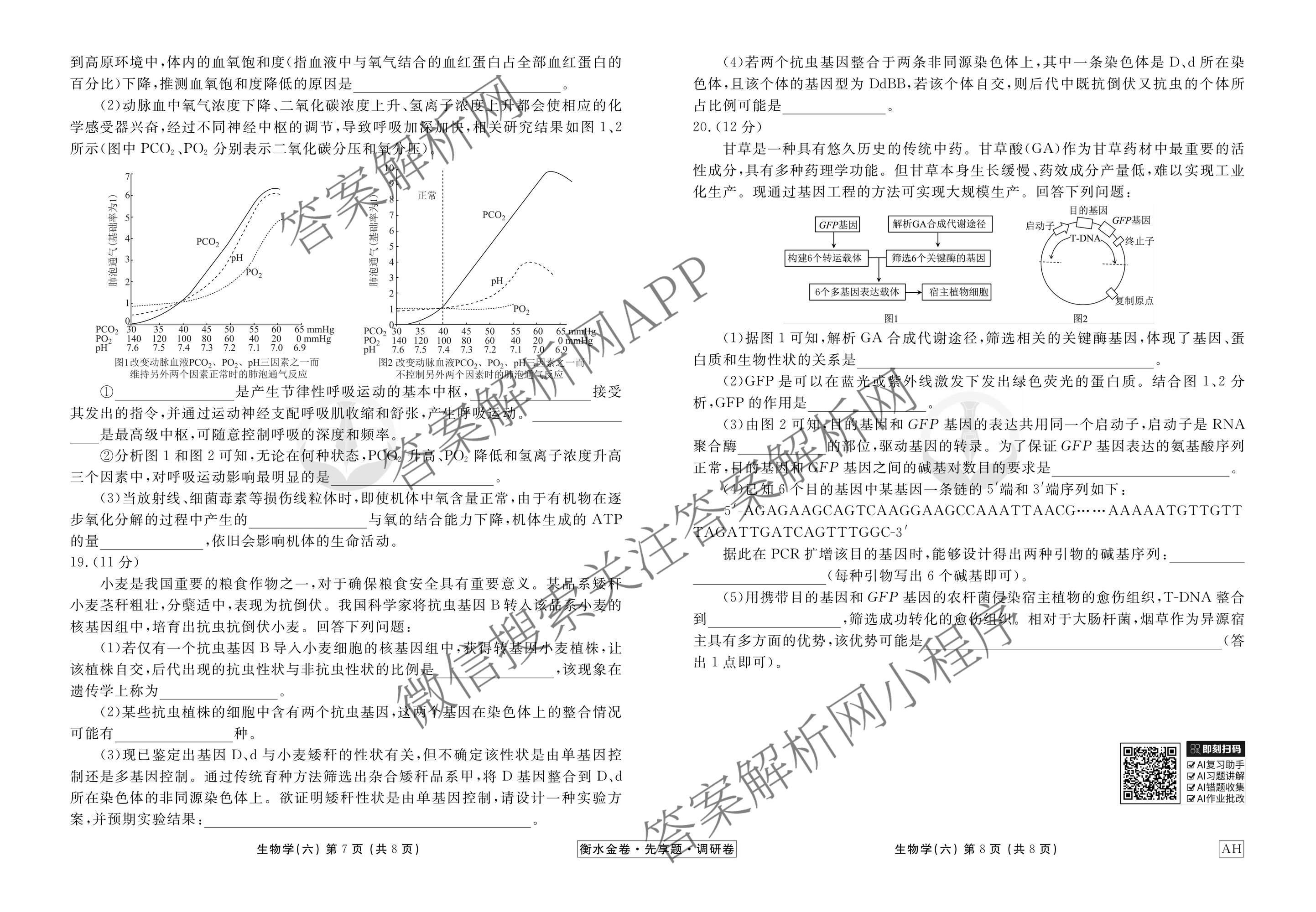 衡水金卷先享题·调研卷·2026年普通高中学业水平选择性考试模拟试题(六)6生物(AH)试题,目前衡水金卷先享题答案网已经汇总了衡水金卷先享题·调研卷·2026年普通高中学业水平选择性考试模拟试题(六)6生物(AH)试题的各科答案和试卷,获取更多衡水金卷先享题答案解析,请在关注本站。