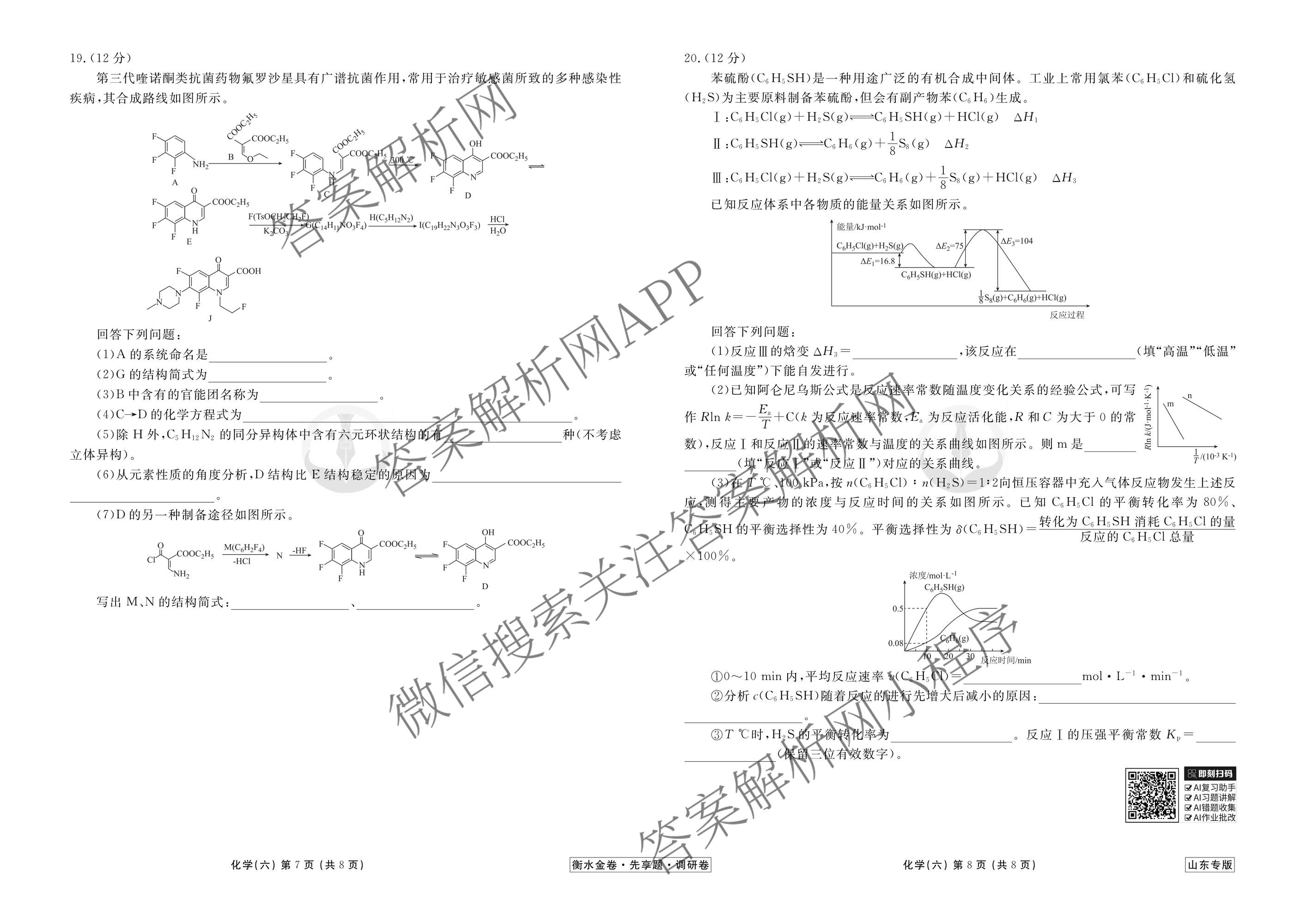 - [高三][衡水金卷先享题]·调研卷·2026年普通高中学业水平等级考试模拟试题(六)6化学(山东专版)答案