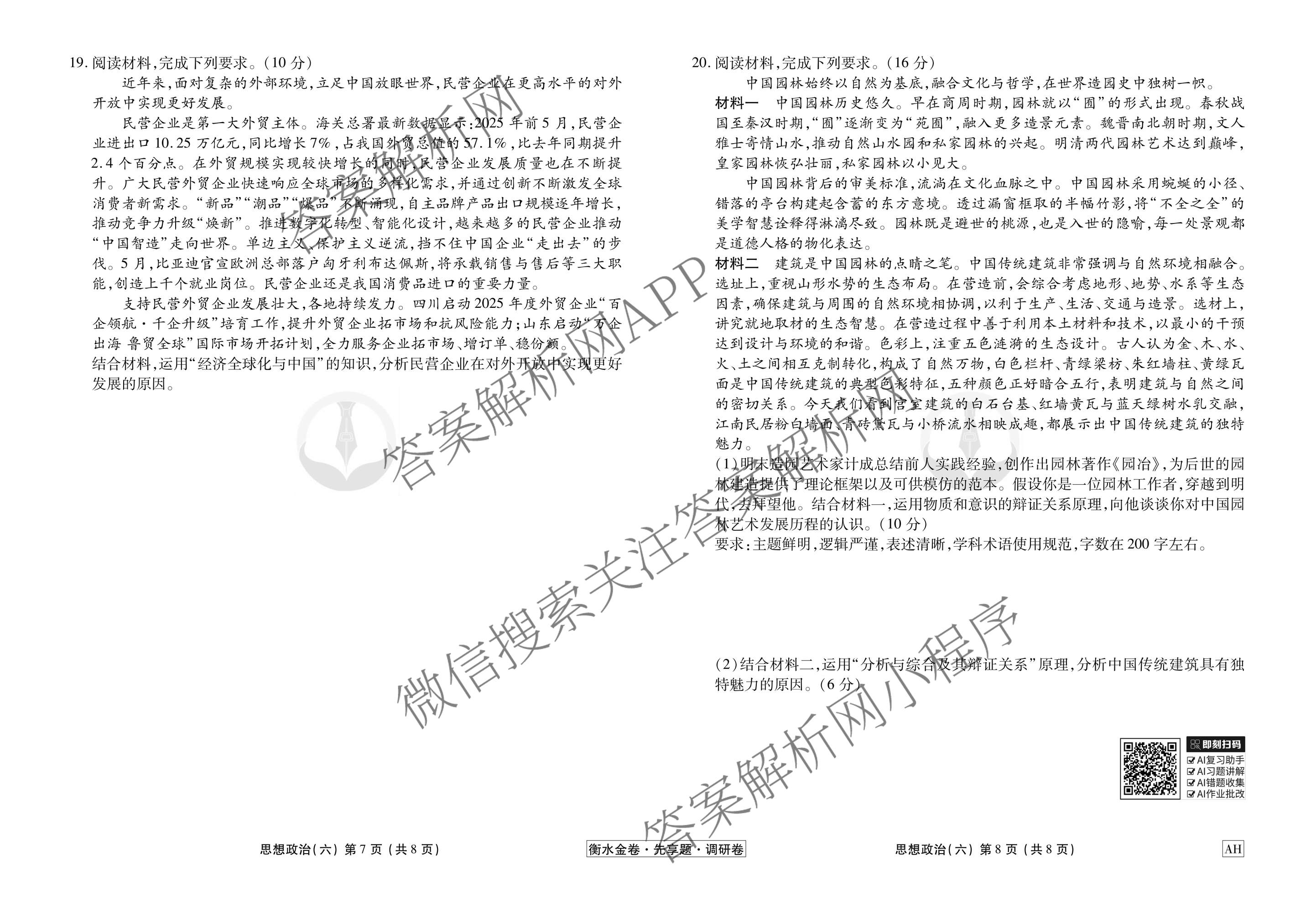 衡水金卷先享题·调研卷·2026年普通高中学业水平选择性考试模拟试题(六)6政治(AH)试题,目前衡水金卷先享题答案网已经汇总了衡水金卷先享题·调研卷·2026年普通高中学业水平选择性考试模拟试题(六)6政治(AH)试题的各科答案和试卷,获取更多衡水金卷先享题答案解析,请在关注本站。