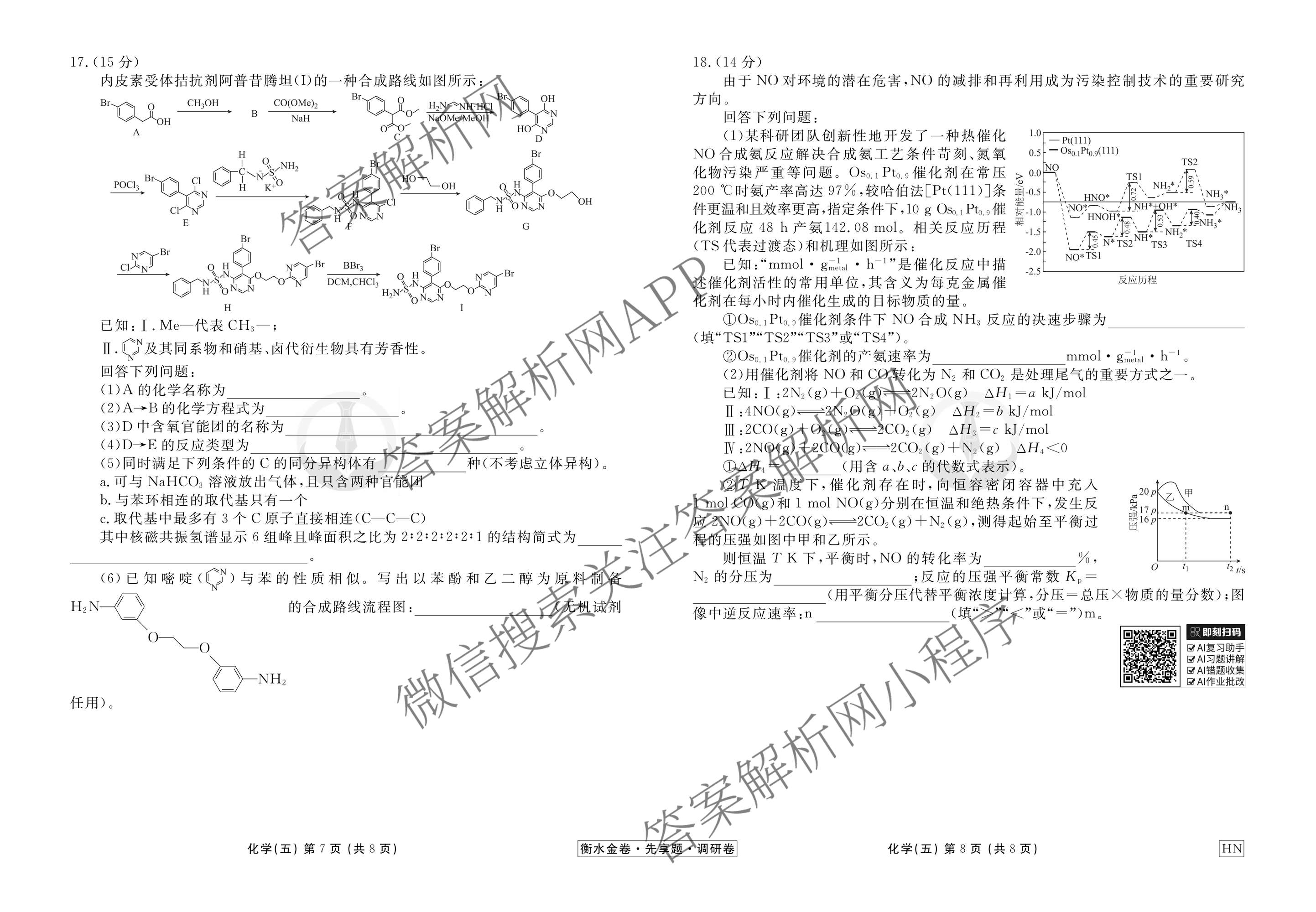 - (衡水金卷先享题)调研卷2026年普通高中学业水平选择性考试模拟试题(五)5化学(HN)答案