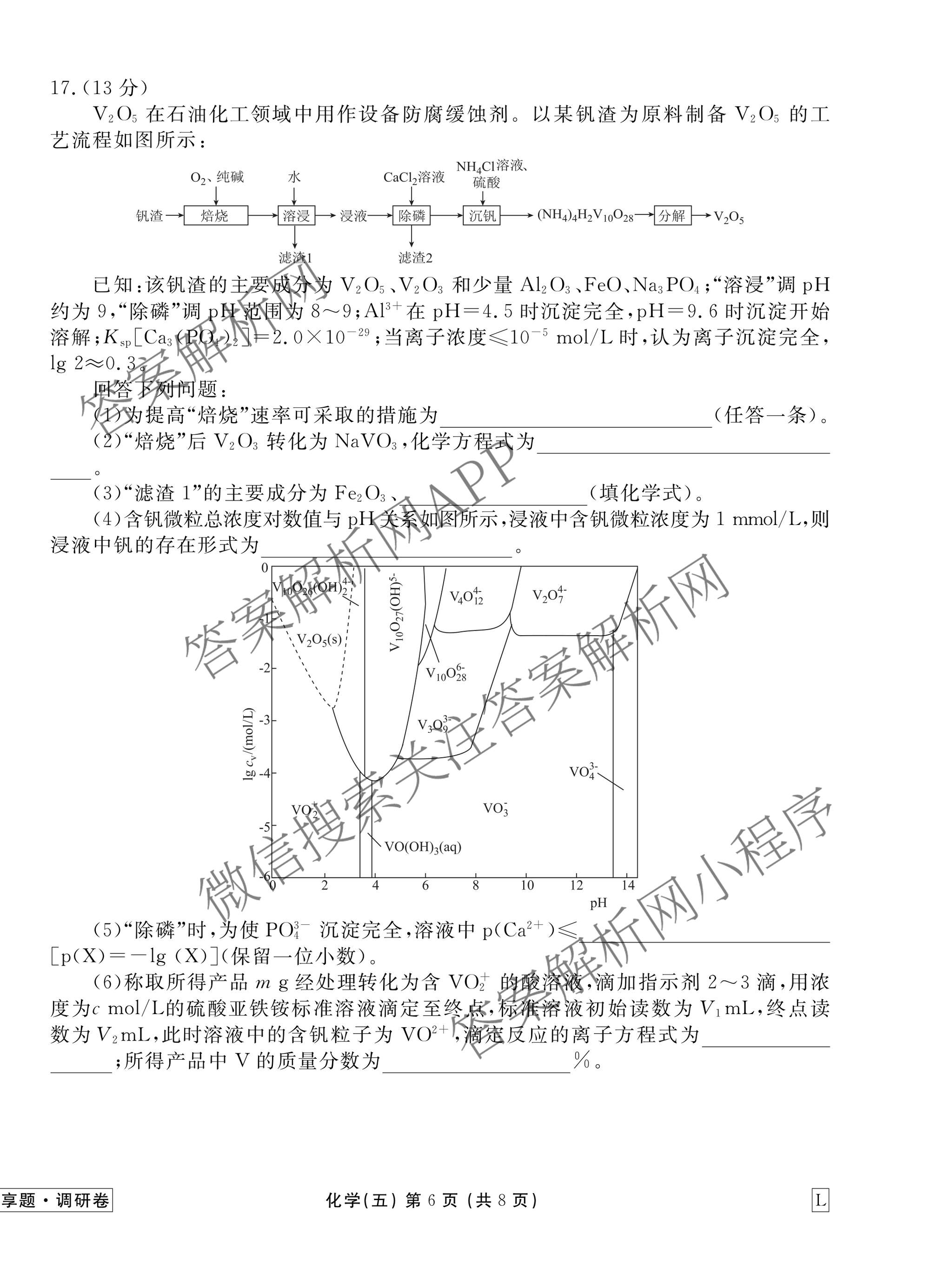 - (高三)衡水金卷先享题·调研卷·2026年普通高中学业水平选择性考试模拟试题(五)5化学(L)答案