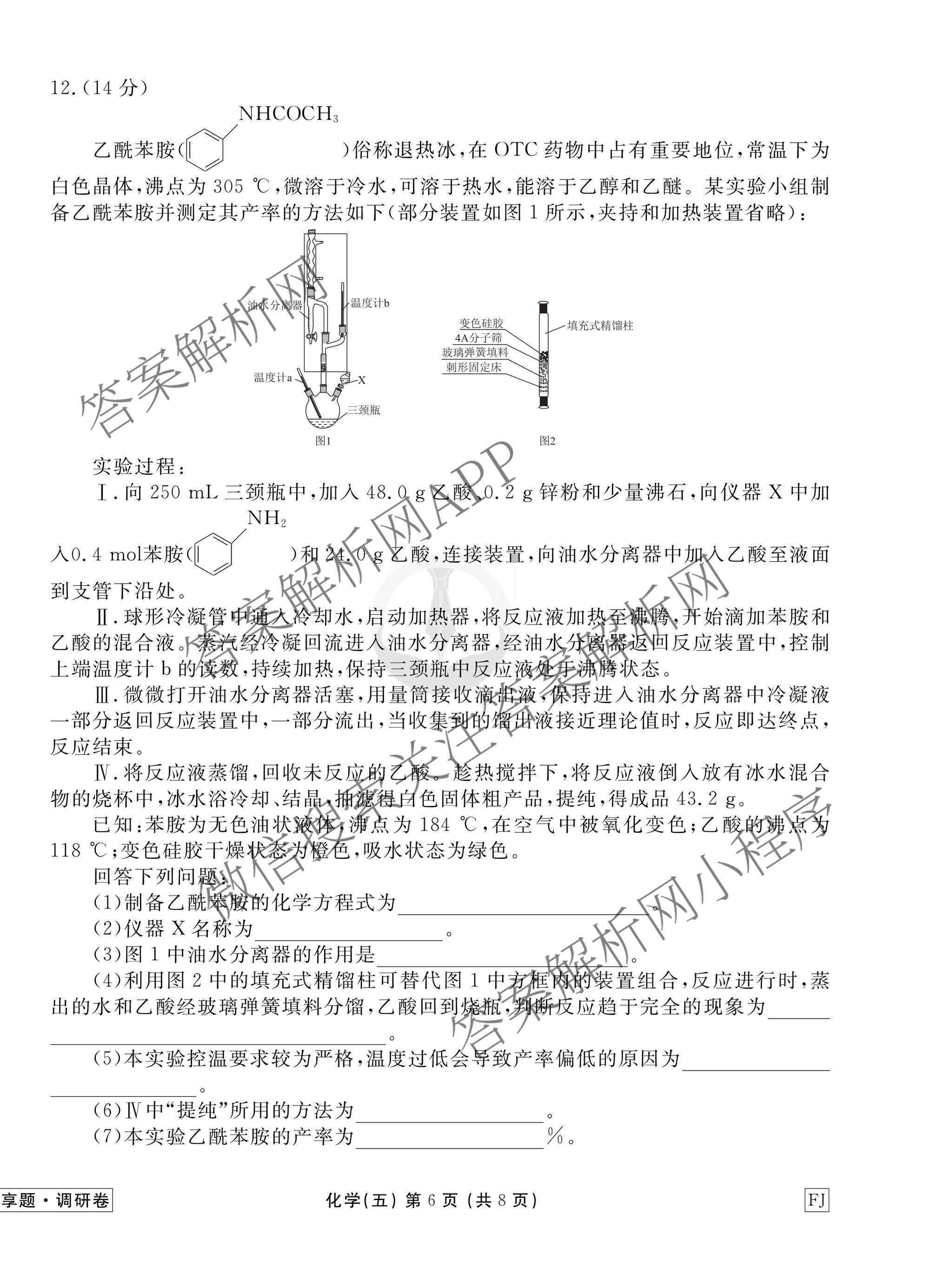 - [衡水金卷先享题]调研卷2026年普通高中学业水平等级考试模拟试题(五)5化学(山东专版)答案